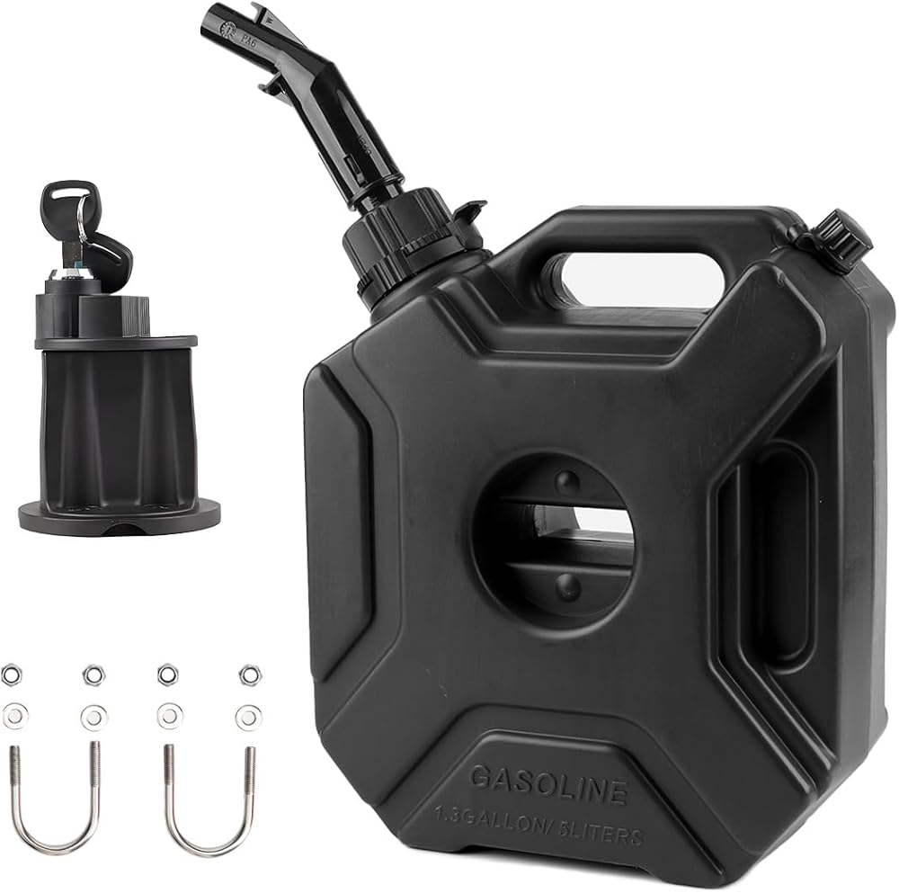 خزان المياه المحمول مع قفل التثبيت المتصاعد 5 لتر / 1.3 جالون يناسب معظم السيارات والدراجات النارية وسيارات الدفع الرباعي ATV UTV (أسود مع قفل)