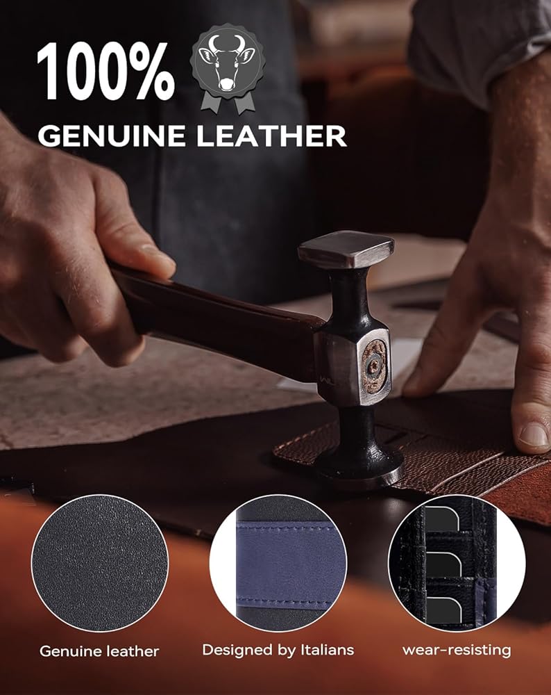 【جلد بقر ناعم وأملس】مصنوعة من جلد البقر الفاخر، محفظتنا ناعمة الملمس. تمنحه عملية الخياطة الرائعة والتصميم الأنيق مظهرًا راقيًا ومتطورًا. سواء كنت تحملها في يديك أو تضعها في جيبك، فإن المحفظة تشعر بالراحة والطبيعية، دون أي حجم أو إزعاج.