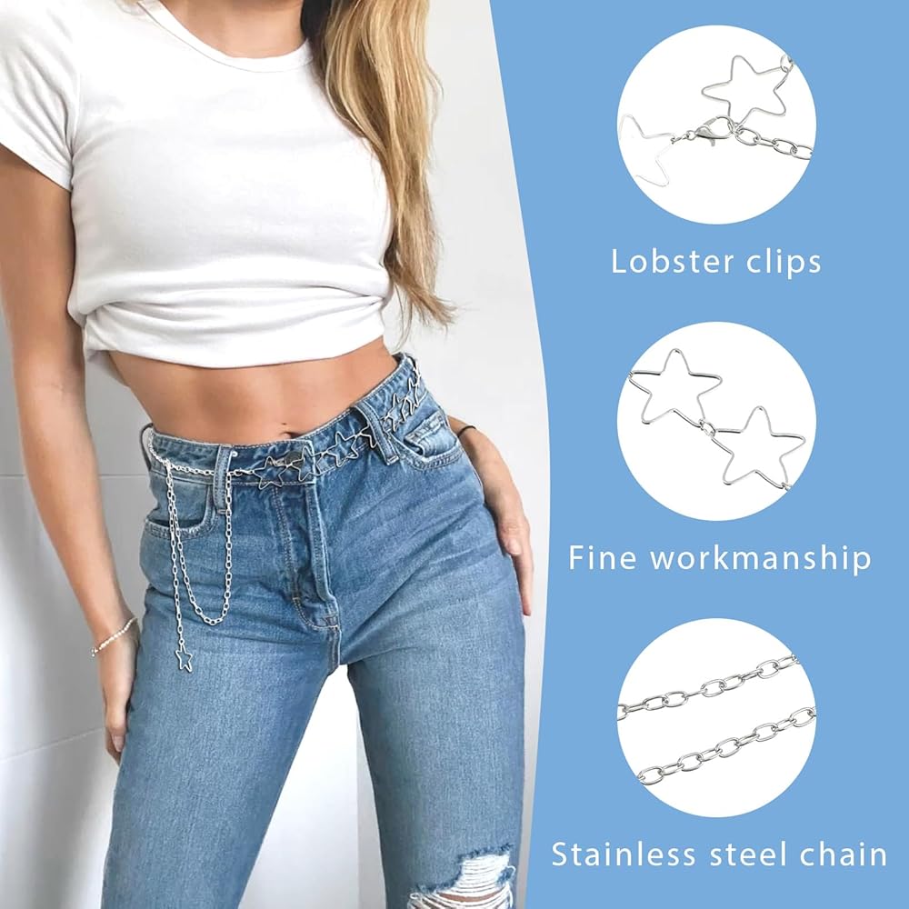 تصميم نجمة أنيق - يتميز حزام السلسلة النجمية الخاص بنا بتصميم نجمة أنيق يضيف لمسة أنيقة إلى أي ملابس، مما يعزز مظهرك العام دون عناء؛