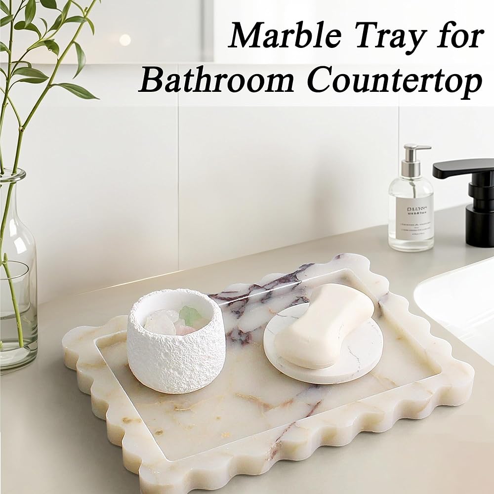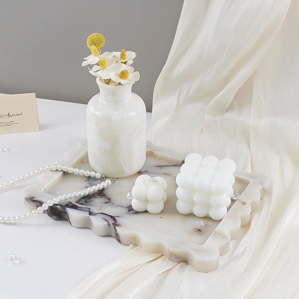 [مصممة لتدوم طويلاً ومحمية]: مصنوعة من أجل المتانة، توفر هذه الصينية الرخامية متانة دائمة للاستخدام اليومي مع الحفاظ على جاذبيتها الفاخرة. يضمن البناء الحجري الصلب تخزين أغراضك بأمان، بينما تحافظ الوسائد المضادة للانزلاق على الصينية آمنة وتحمي أسطحك من الخدوش.