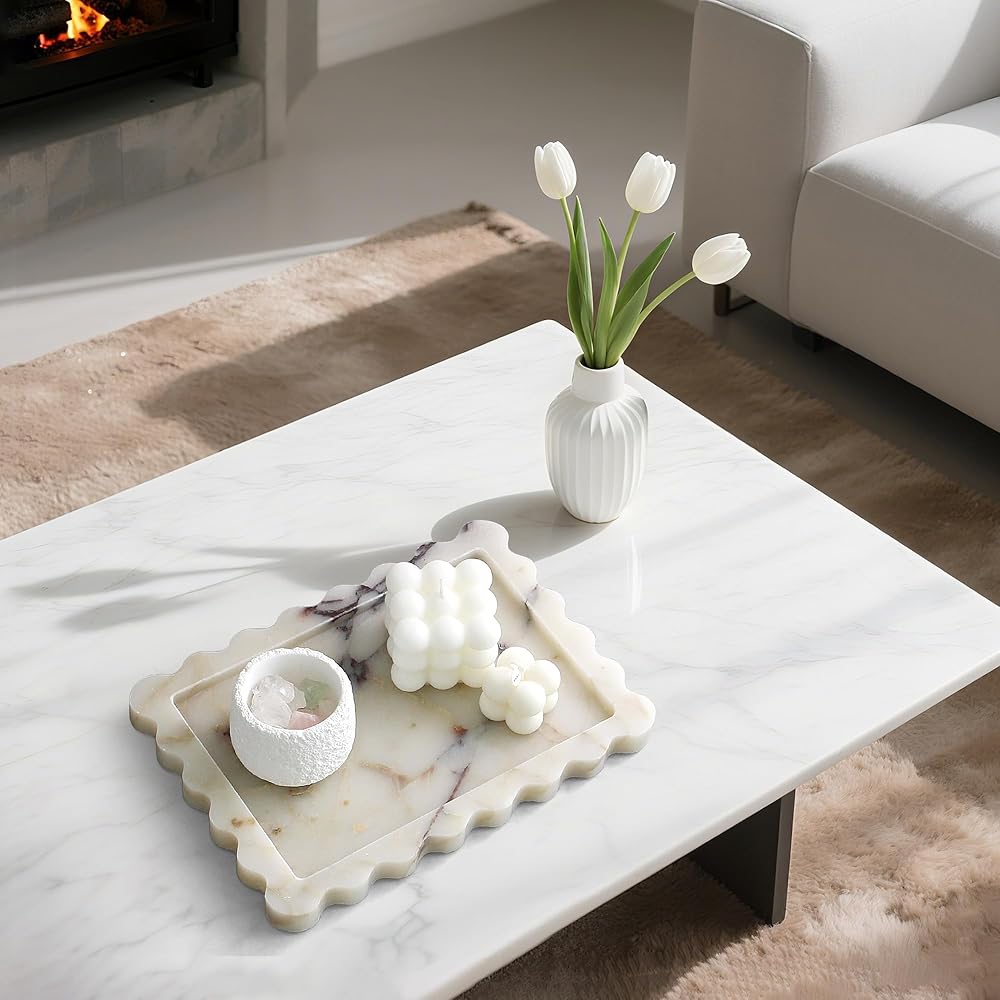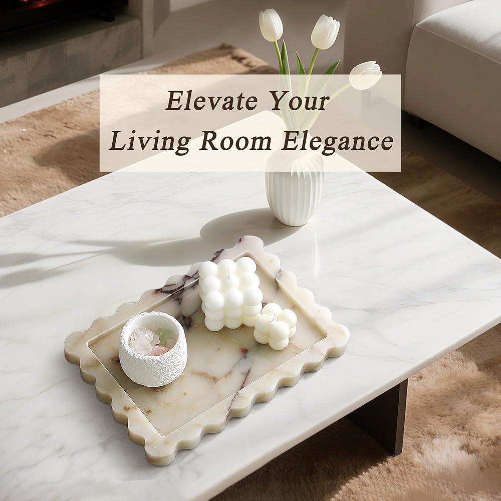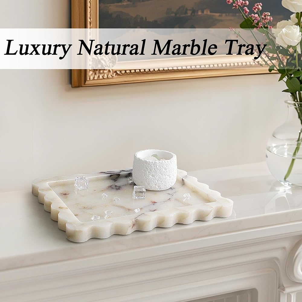 [اختيار الهدية المثالية]: هل تبحث عن الهدية المثالية؟ تعتبر هذه الصينية الرخامية خيارًا راقيًا وعمليًا لحفلات الزفاف أو حفلات الانتقال لمنزل جديد أو أعياد الميلاد. فاجئ أحبائك بقطعة زخرفية تمزج بين الأناقة العصرية والوظيفة اليومية.