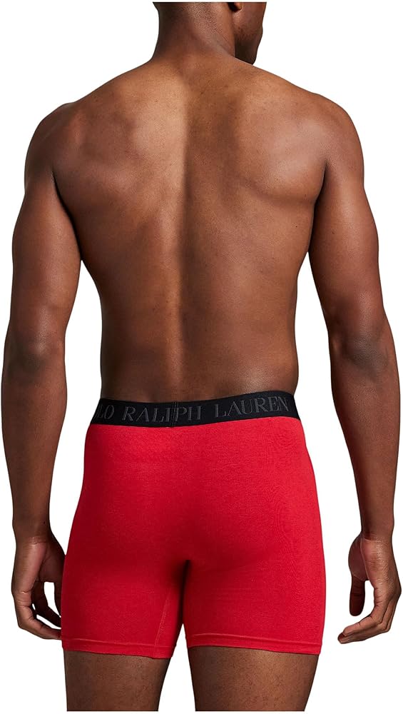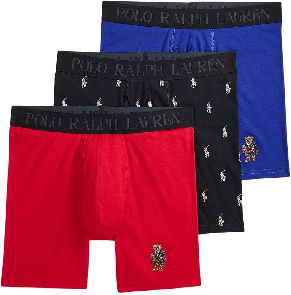 Ultra comfort infused with classic style. The Polo Ralph Lauren Boxer Brief Holiday Gift Set is crafted from a soft cotton blend in a pull-on style with an elasticized waistband and repeat branding on the waistband. Sold as a three-pair pack. Supportive pouch with an open fly. Classic fit. 58% cotton, 37% modal, 5% spandex. Machine wash.