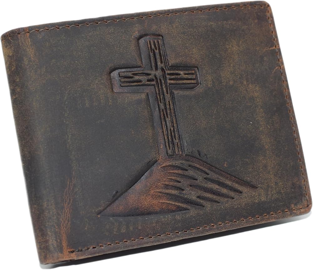 • Faith-Inspired Cross Design – This wallet features a beautifully embossed Christian Cross on the front, making it a meaningful accessory that reflects faith, devotion, and inner strength. Its rustic look is perfect for men who want to carry their values with them every day.