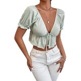 بلوزة نسائية صيفية من Floerns برقبة على شكل حرف V وعقدة عالية ومنخفضة بحاشية مشمش M