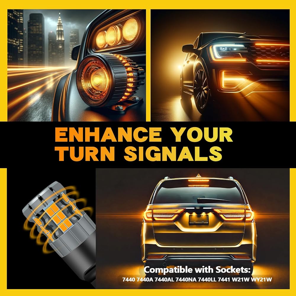 【ترقية الرؤية والسلامة】 تنبعث هذه المصابيح ضوءًا كهرمانيًا ساطعًا، مما يزيد بشكل كبير من رؤية إشارات الانعطاف الخاصة بك، مما يعزز تفاعلات القيادة الأكثر أمانًا.
