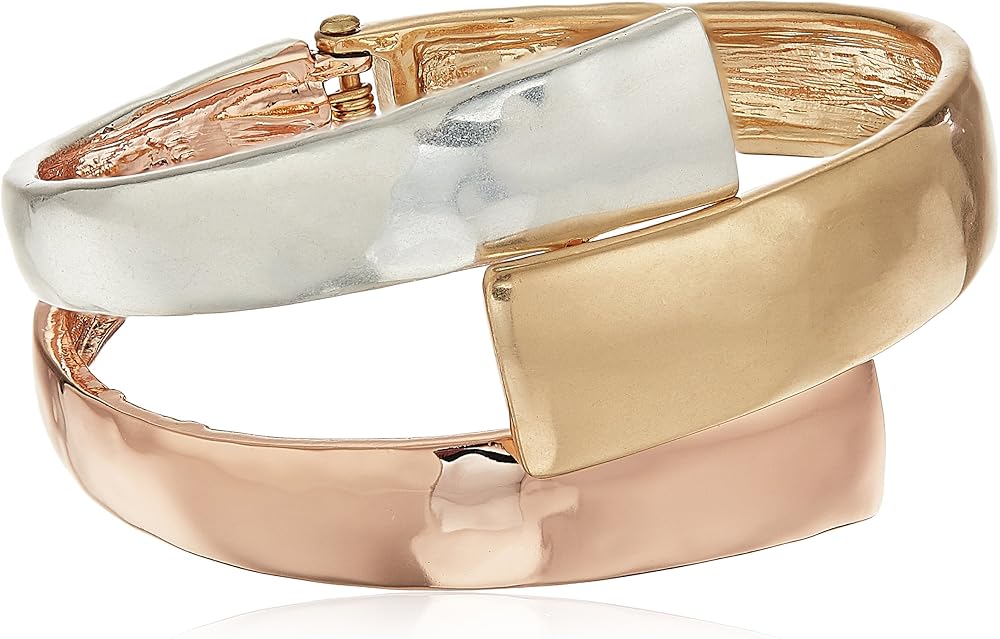 - silver, gold and rose gold plated bypass hinged bangle