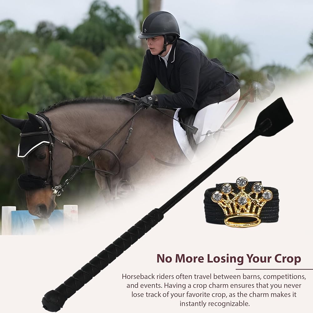 The perfect addition to any equestrian's crop or whip, our crop charm is designed to stretch and fit most standard sizes. Made with a 5cm elastic band, it adds a touch of style and personalization to your riding gear.