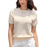 المميزات: سترة محبوكة بأكمام قصيرة، خط رقبة مضلع، وأساور أكمام وحاشية، تصميم بلون نقي يمكن أن يجعلك تبدين ساحرة