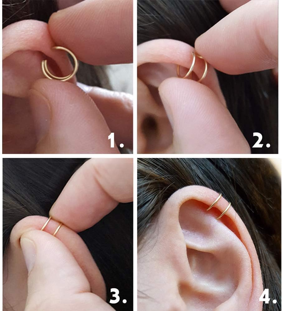 كيفية وضع المتسلق: تتطلب أقراط المتسلق ثقبًا قياسيًا في شحمة الأذن. لارتدائه، ما عليك سوى وضعه من خلال ثقبك المثقوب مثل الأقراط السلكية الفرنسية العادية، ثم اقلبيه على الجانب ومرريه على أذنك مثل دبوس الشعر. أعطها قرصة لطيفة لإبقائها محكمة على أذنك.