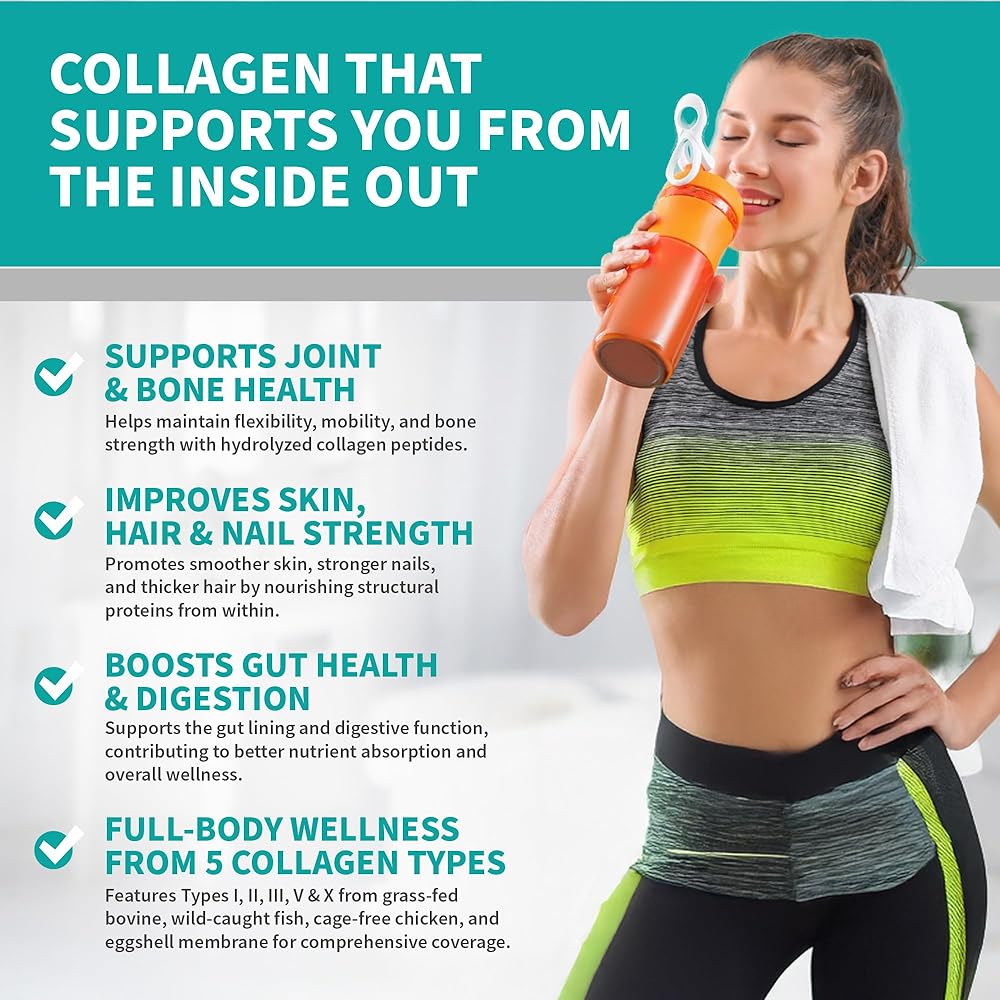 • نافورة الشباب | وقد تبين أن زيادة استهلاك مكملات الكولاجين تساعد في إصلاح الخلايا في بشرتنا وشعرنا والأظافر. هذا يعني بشرة أكثر سلاسة وموثقة ، أظافر أكثر صحة ، وشعر أكمل. سيبقيك مسحوق الكولاجين متعدد الكولاجين يبدو أنك شاب لسنوات قادمة.