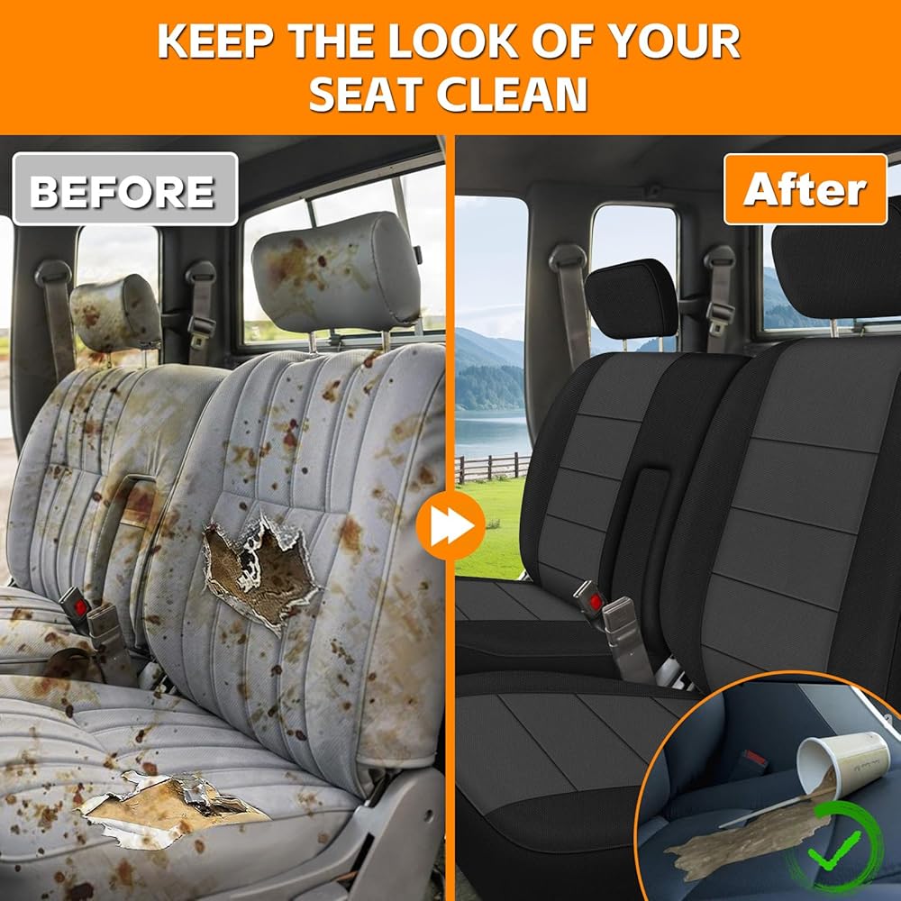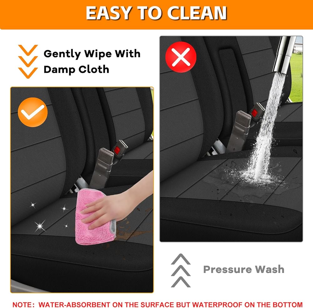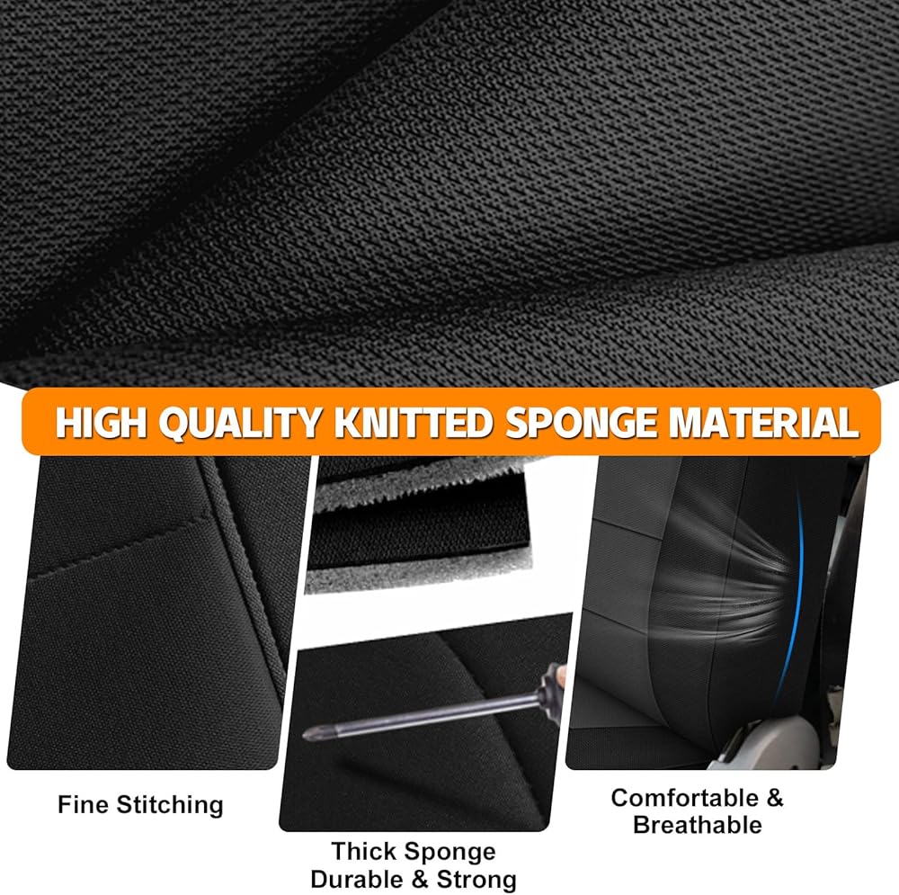 سهلة التنظيف والتركيب البسيط: يمكن تنظيف أغطية المقاعد المصنوعة من القماش المحبوك بسهولة عن طريق مسحها بقطعة قماش مبللة، لأنها غير قابلة للغسل في الغسالة. يضمن الملاءمة الدقيقة والأشرطة القابلة للتعديل تجربة تركيب خالية من المتاعب، مما يوفر لك الوقت والجهد.