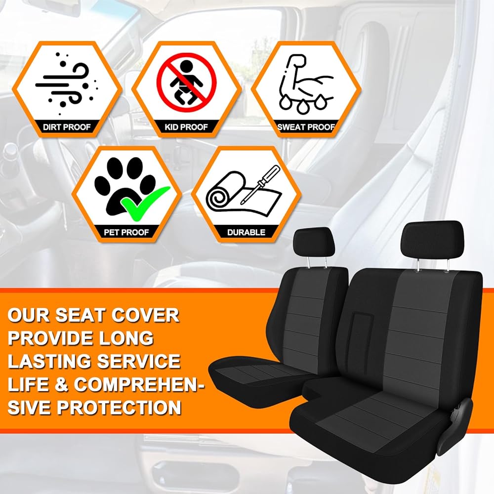 مواد عالية الجودة: أغطية المقاعد الأمامية المصنوعة من القماش المحبوك مصنوعة من مادة قطنية فاخرة، مما يضمن حلاً مريحًا وقويًا لحماية مقعد سيارتك.