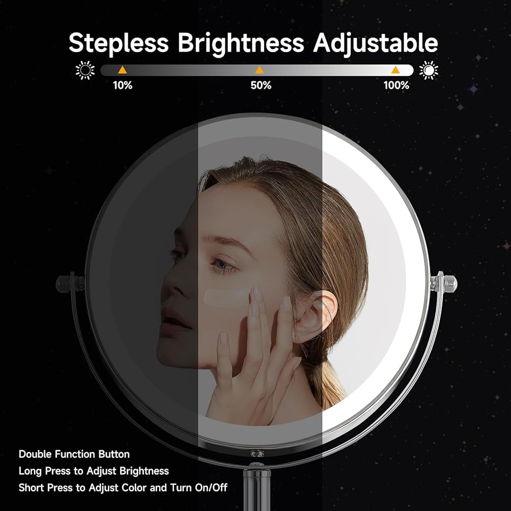 • تكبير 10X مزدوج الجانب عالي الوضوح: تكبير 1X/10X، التصميم الكلاسيكي مزدوج الجوانب يجعل مرآة المكياج المزودة بمصباح LED هذه أسهل بكثير للحصول على مظهر مكياج لا تشوبه شائبة. تأثير كلا الجانبين ليس فقط على المكياج، ولكن أيضًا على تفاصيل الوجه مثل ارتداء العدسات اللاصقة أو تشذيب الحواجب أو الحلاقة أو تصفيف الشعر أو علاجات الوجه أو وضع الماسكارا. نصائح ودية: عند استخدام عدسة مكبرة 10 مرات، يرجى إبقاء وجهك بعيدًا عن المرآة بمسافة 6 بوصات لتجنب الدوخة.