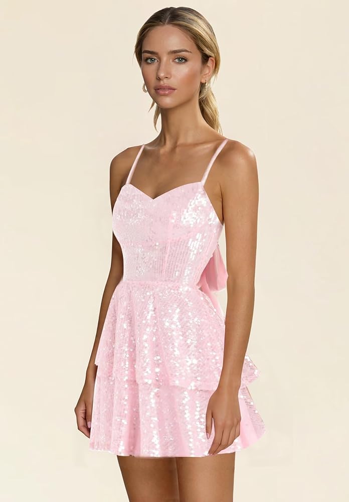 • المزايا: أشرطة سباجيتي، على شكل قلب، طول صغير، قصير، على شكل حرف A، بأربطة من الخلف، ظهر مفتوح، بدون ظهر، مبطن بالكامل، حمالة صدر مدمجة، بدون أكمام، فستان بمقاس كبير، فساتين العودة للوطن بالترتر اللامع للمراهقين
