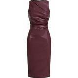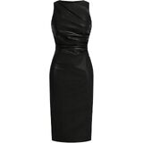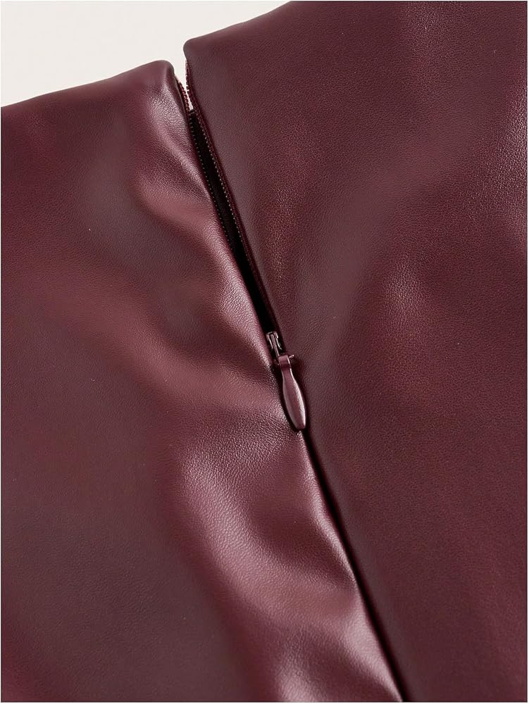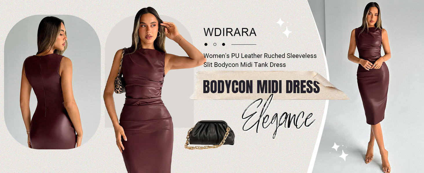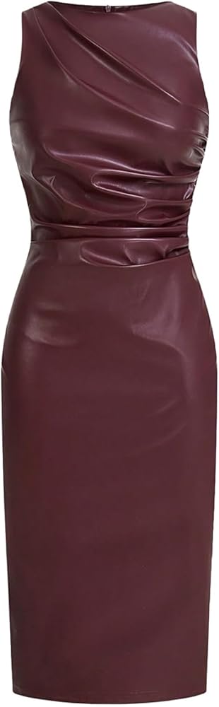 فستان WDIRARA نسائي من جلد البولي يوريثان مكشكش بدون أكمام بفتحة ضيقة متوسط الطول