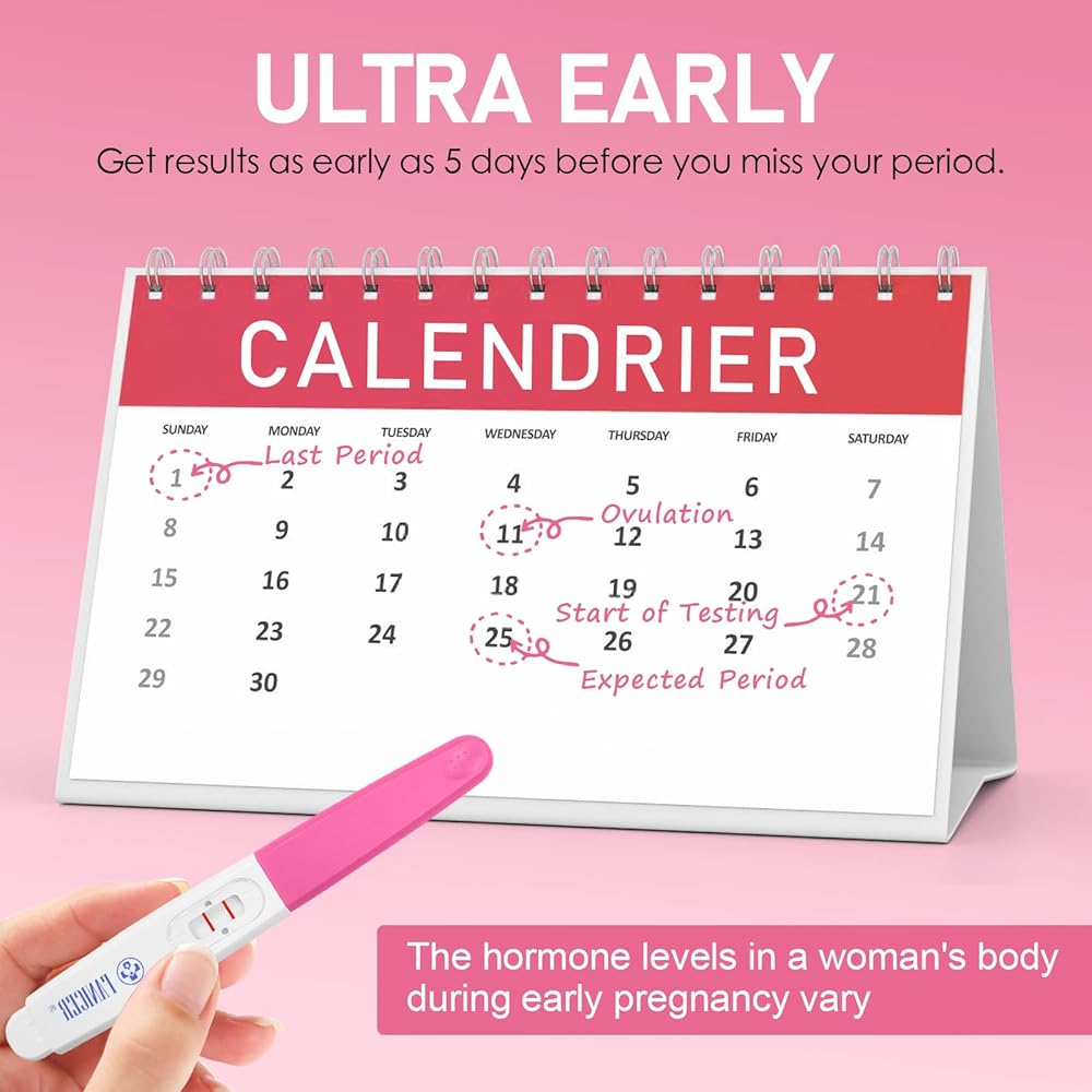 5 اختبارات حمل للكشف المبكر، مجموعة أدوات اختبار الحمل، كشف مبكر دقيق لـ HCG للنساء، سريع وسهل الاستخدام، اختبارات حمل سهلة في المنزل، معبأة بشكل فردي (أحمر وردي)