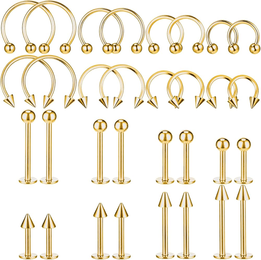 YBEATY 64 PCS Lip Rings Vertical Labret Jewelry Lip Barbell Ring Medusa Snake Bite Earring Piercing Jewelry Helix Earring Daith Tragus Cartilage Studs Steel for Women Men