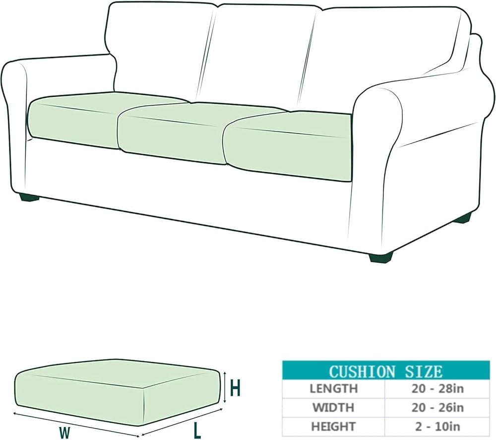 مناسبة لأي شكل: إنها مصنوعة من نسيج فائق المرونة فريد من نوعه، وهو مناسب جدًا لوسادة المقعد المربعة العادية، ووسادة المقعد على شكل حرف T ووسادة المقعد على شكل حرف L. لا يمكنها فقط تغطية وسادة الأريكة، ولكن أيضًا تغطية مسند الظهر المنفصل عن الأريكة. كل غطاء وسادة مناسب للوسادة بطول 20-28 بوصة، وعرض 20-26 بوصة وسمك 2-10 بوصة. يرجى قياس وسادتك قبل الطلب.