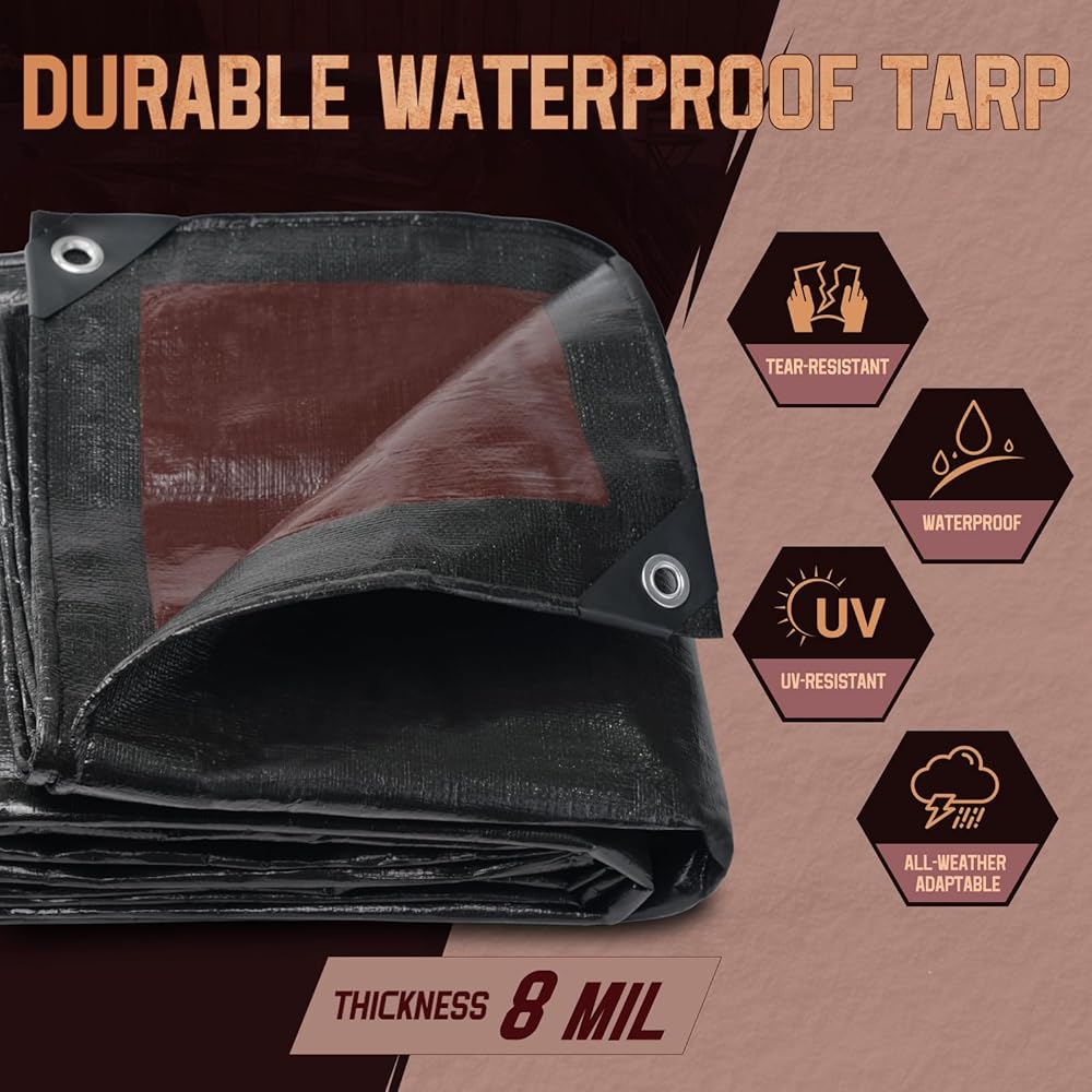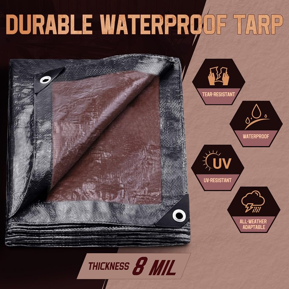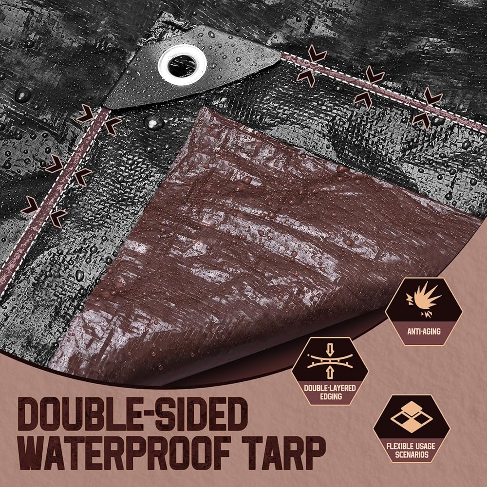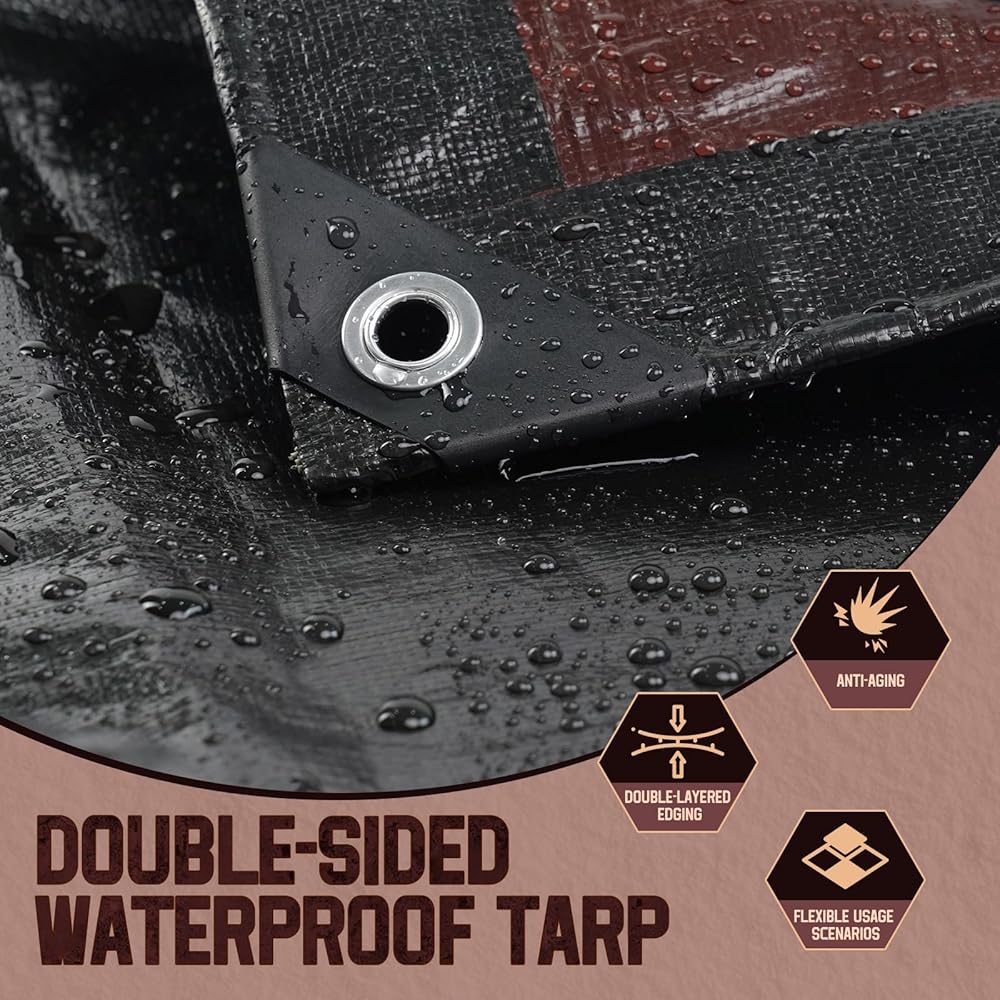 • 【المتانة الممتازة】 يتكون مقاوم للماء TARP من مواد PE عالية الجودة ، متينة ومع صنعة ممتازة. يبلغ سمك القماش المشمع مقاوم للماء 8 مل ويمكن استخدامه على كلا الجانبين ، مقاومًا للماء ، أو حماية للرياح أو ليس من السهل تمزيقه.