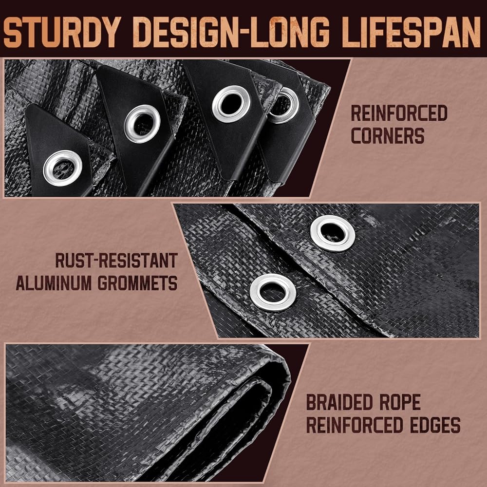 • 【وظيفة متعددة الأغراض】 تافهة من البلاستيك في الهواء الطلق في الهواء الطلق مناسبة لتغطية القوارب والسيارات والأثاث في الهواء الطلق وأدوات الفناء والمشويات والنباتات وحتى مناطق البناء أو كووب الدجاج. يمكن لهذا القنب للأشعة فوق البنفسجية حمايتهم من أضرار المطر أو الرياح أو الضباب أو التجميد أو الصقيع. إنه أفضل خيار مقاوم للطقس ، مقاوم للماء ، ومقاوم للغبار.