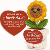 Show your dearest friend how much they mean to you with this handmade crochet sunflower plush, holding a love‑filled message: “True Friends are like bright sunflowers that never fade away even over distance and time.” Lovingly crafted with soft yarn, this mini sunflower brightens any space—perfect on desks, nightstands, or car dashboards. A thoughtful reminder that true friendship endures no matter the miles. Ideal for birthdays, graduation, friendship milestones, Christmas, or just surprise acts of love. This charming plush doubles as both a delightful decorative accent and an emotional support token, always reminding them of your bond.
