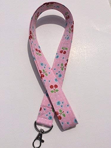 حامل مفاتيح لبطاقة الهوية من Cherries Lanyard مصنوع من القطن والوردي والأحمر