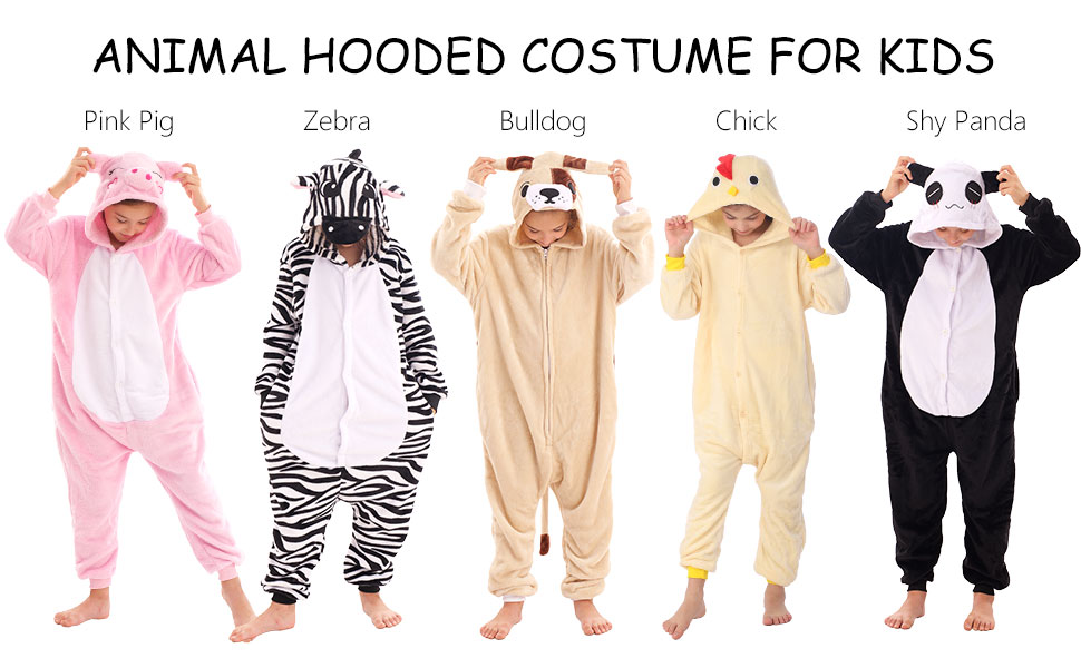 One piece costume which enable kids easy to dress up themselves.Each cosutme equipped with vivid animal hood to improve your cosplay look.