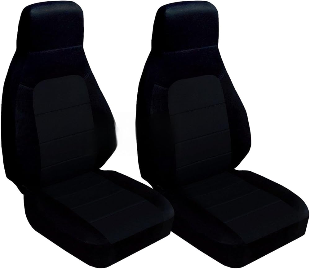 A set of black and sand car seat covers for a 1999 to 2000 Mazda MX-5 Miata. Be sure to visit our storefront ("Totally Covers") where you can find the largest selection of seat covers, to satisfy even the most demanding of tastes. If you can't find what you are looking for, please contact us ("Totally Covers") We can make seat covers for ANY car, truck, van, RV or SUV in a variety of 145 colors and prints, and even add your name/text and logo/design on them!