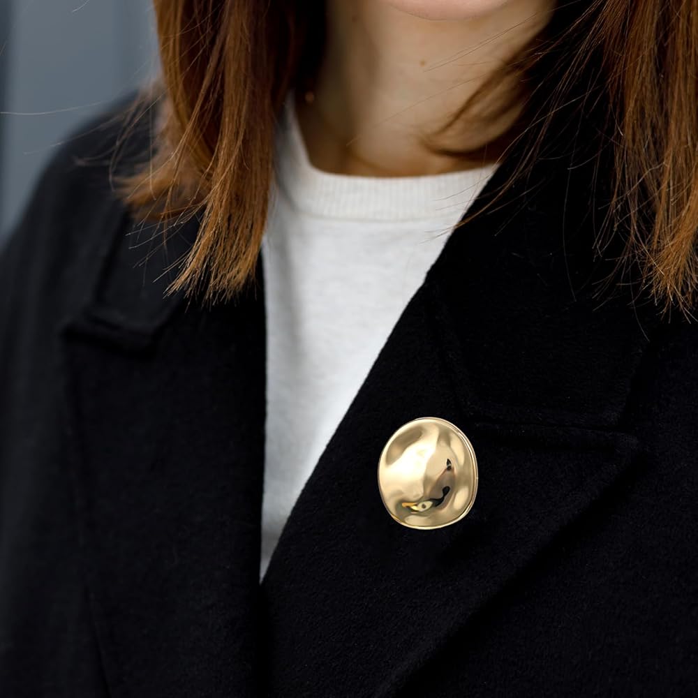 【What You Will Receive】Our brooches and pins for women include 2 gold irregular round brooches, each featuring unique geometric and natural curves. Our brooch showcases irregular circular details that make the metallic luster appear more dynamic in light and shadow.