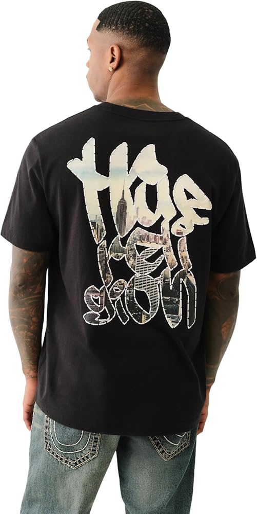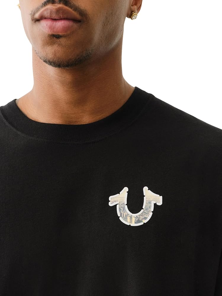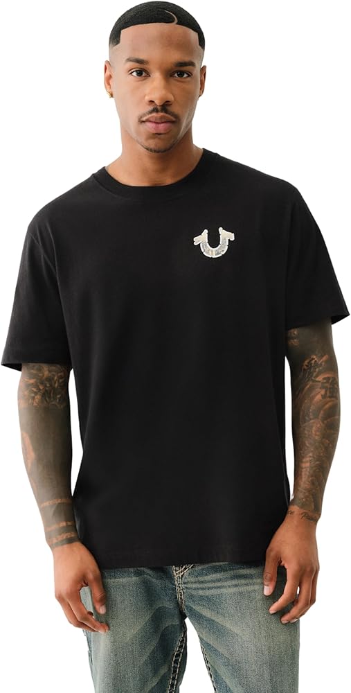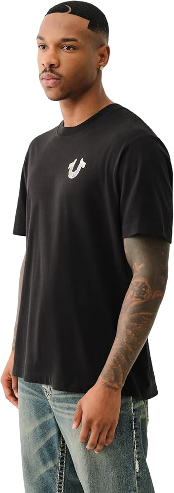 The True Religion Men's Short Sleeve True Court Tee combines athletic-inspired style with everyday comfort. Featuring a bold True Court graphic, this tee offers a modern, sporty look perfect for casual outings. Made from soft, breathable fabric, it ensures lasting comfort whether you're on the move or lounging at home. The classic crew neck and regular fit provide a relaxed silhouette that pairs effortlessly with jeans, shorts, or joggers. Whether you're dressing up for a laid-back day or layering with your favorite outerwear, this versatile tee is a must-have addition to your wardrobe.