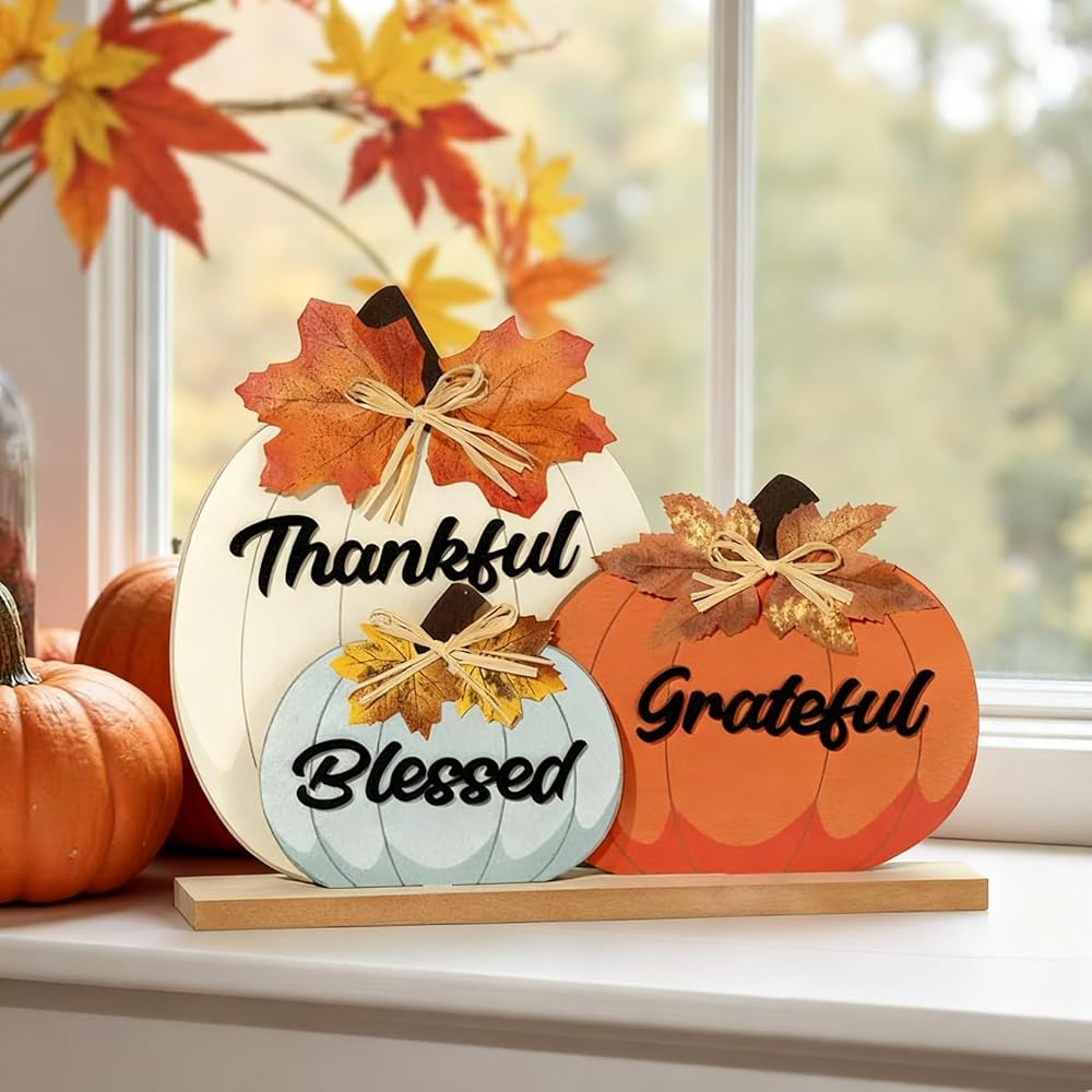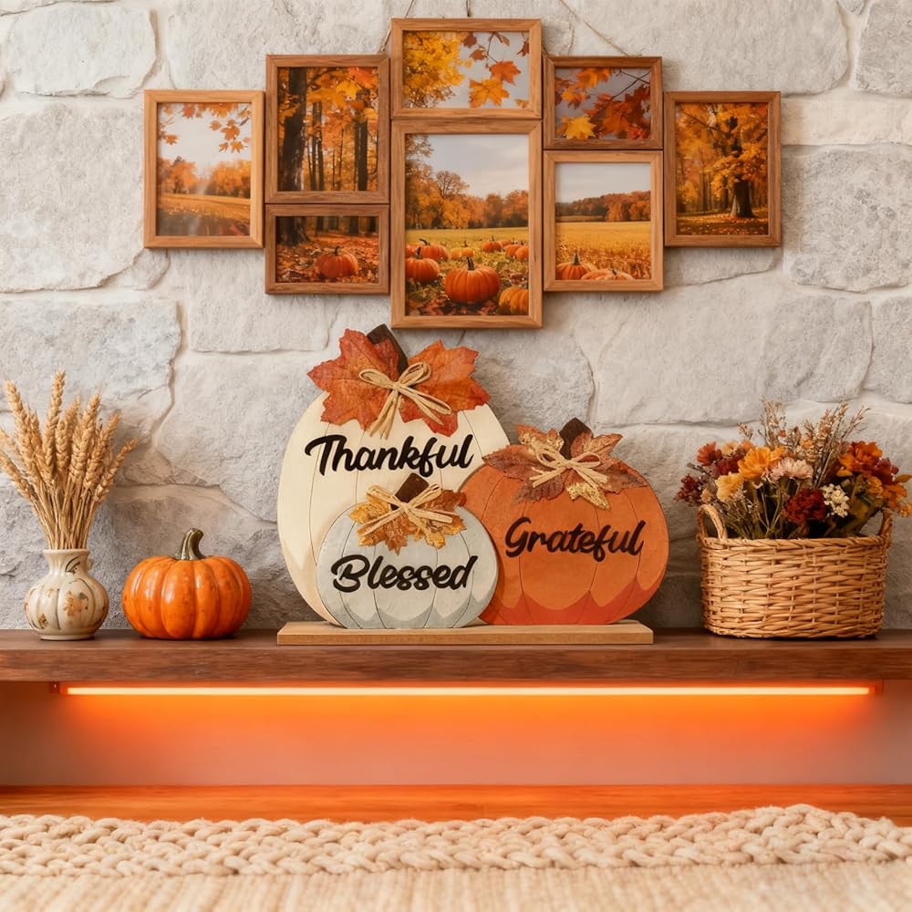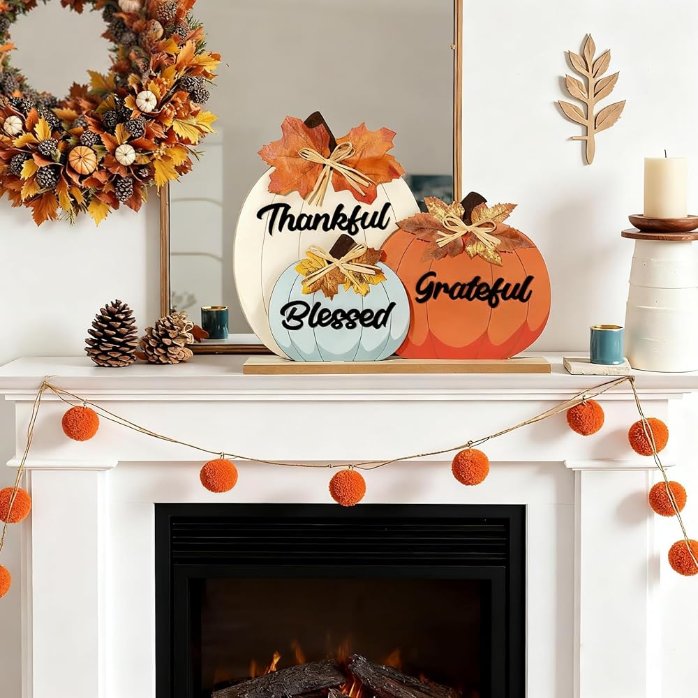 ديكورات السقوط للمنزل: تم تصميم ديكور سقوط قرع القرع ثلاثي الأبعاد مع الحروف ممتنة ممتنة ، ومزينة بأقواس وأوراق القيقب. ألوان الخريف الكلاسيكية من القرع الأبيض والبرتقالي والأزرق لافتة للنظر ، مما يمنح منزلك جوًا دافئًا ، وسوف تجذب علامات السقوط التي تصطاد العين وتفاجئ ضيفك