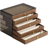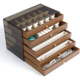 • 【المواد المتينة】 وهي مصنوعة من الأكريليك عالي الجودة ، وبطانة مخملية ، ودرج خشبي. هذا الإطار الخشبي قوي للغاية ، ومربع المجوهرات المخملية يحمي مجوهراتك بشكل فعال ، مما يضمن التخزين الآمن ومنع الخدوش