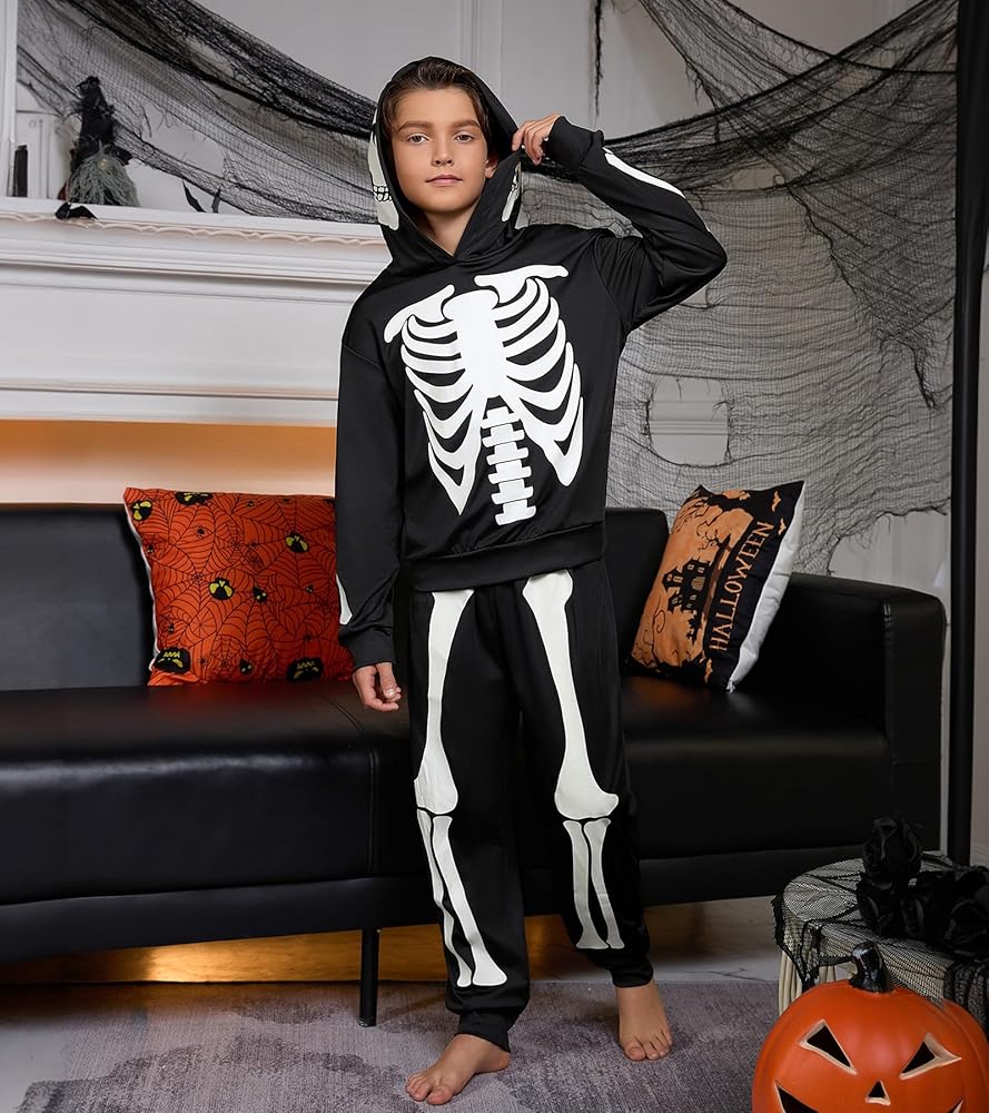 قطعتين: هيكل عظمي للأولاد والبنات يشتمل على هوديس وبنطلون