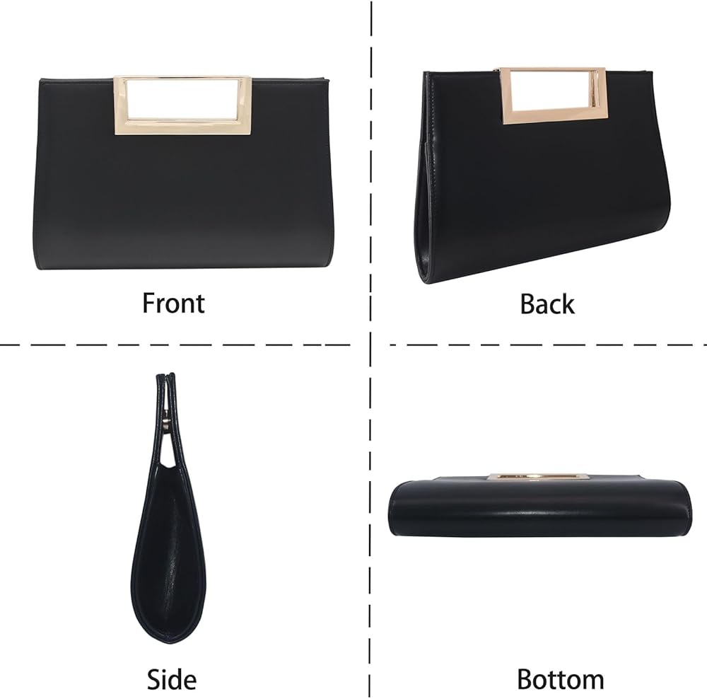 This evening handbag is the epitome of elegance and sophistication. Crafted from premium vegan leather, it boasts a spacious interior that can accommodate all your essentials for a night out or a formal event. The large size, measuring 11.02”(L)x7.28”(H)x1.97”(W), ensures you have ample space for your 6.7” phone, wallet, small makeup essentials. The standout feature is the stunning gold-tone metal handle, which adds a touch of glamour and elevates the overall look. Whether you're attending a wedding, a gala, or a fancy party, this clutch purse will be the perfect companion, complementing your outfit.