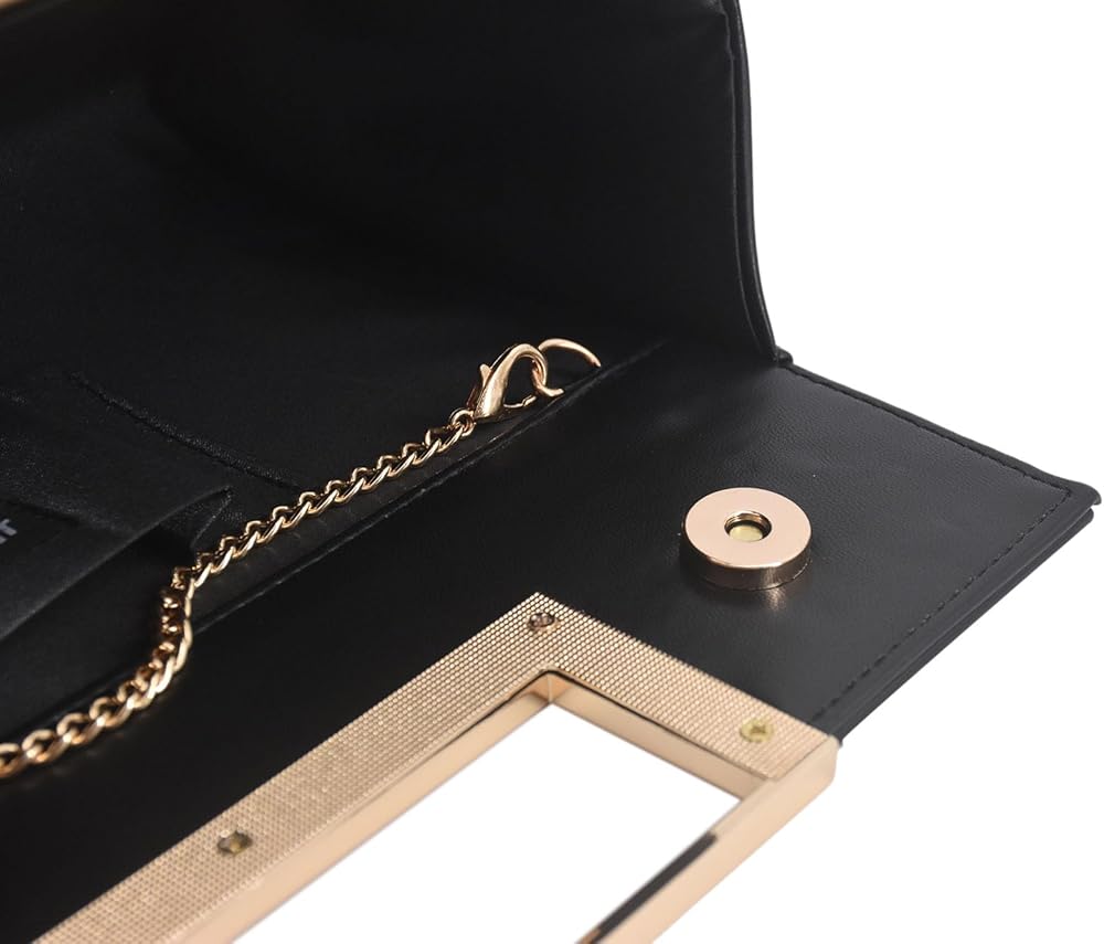 Premium Material: This evening handbag is crafted from high-quality vegan leather, making it a luxurious look.The pu leather clutch purse is easy to clean and maintain for long-lasting use. The inner material is satin which has a silky feeling and comfortable.