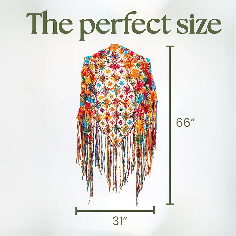 هذا المنتج يدعم السبب المصنوع يدويًا: لقد تم تصنيعه يدويًا بالكامل بالحب والتفاني مع المبادئ الأخلاقية وتمكين الحرفيات في البرازيل والحفاظ على التقاليد الثقافية على قيد الحياة، تسوق من أجل قضيتك وكن جزءًا من الموضة من أجل الخير، رائعة في مزيج من ألوان الزهور هذا الشال مصنوع بتقنية التطريز بالقطن الناعم. وينتهي الشال بحافة مجعدة وجذابة. منسوج يدويًا بالكامل 100 جرام. الشال: 26 بوصة طول × 55 بوصة عرض هامش: 11,8 بوصة الألوان: أحمر، وردي، أصفر، بنفسجي، برتقالي، أرجواني 100% قطن نعومة النسيج: ناعم - هذا المنتج مصنوع من ألياف طبيعية ناعمة الملمس يُغسل يدويًا بشكل منفصل في الماء البارد، صُنع في البرازيل