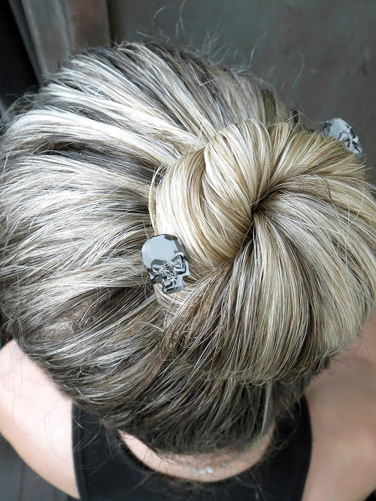 These sparkling crystal skull hair pins add just the right bit of both sweetness and bad-assery to your -'do.