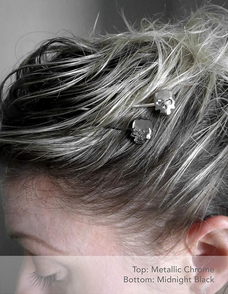 Skull bobby pins: 2-1/8" long, 9/16" tall