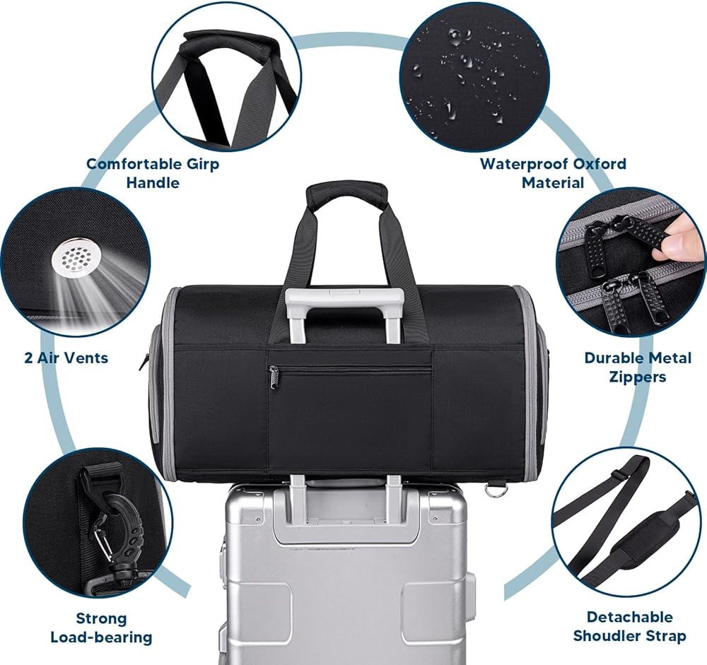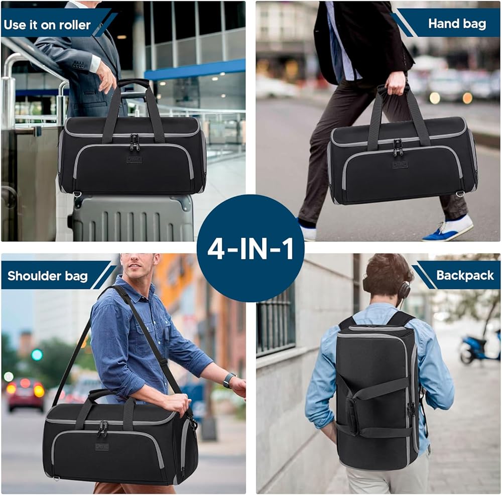 【حقيبة ملابس قابلة للتحويل 4 في 1】 تصميم يجمع بين خصائص حقائب الملابس وحقائب القماش، يمكن تحويلها إلى حقيبة يد أو حقيبة كتف أو حقيبة كاجوال أو حقيبة ظهر. استخدمها كحقيبة لياقة بدنية واسعة وعصرية أو لعطلة نهاية الأسبوع أو للسفر أو قم بفك سحابها بالكامل كمنظم لبدلة التعليق. مثالية لرحلات العمل أو العطلات أو عطلات نهاية الأسبوع!