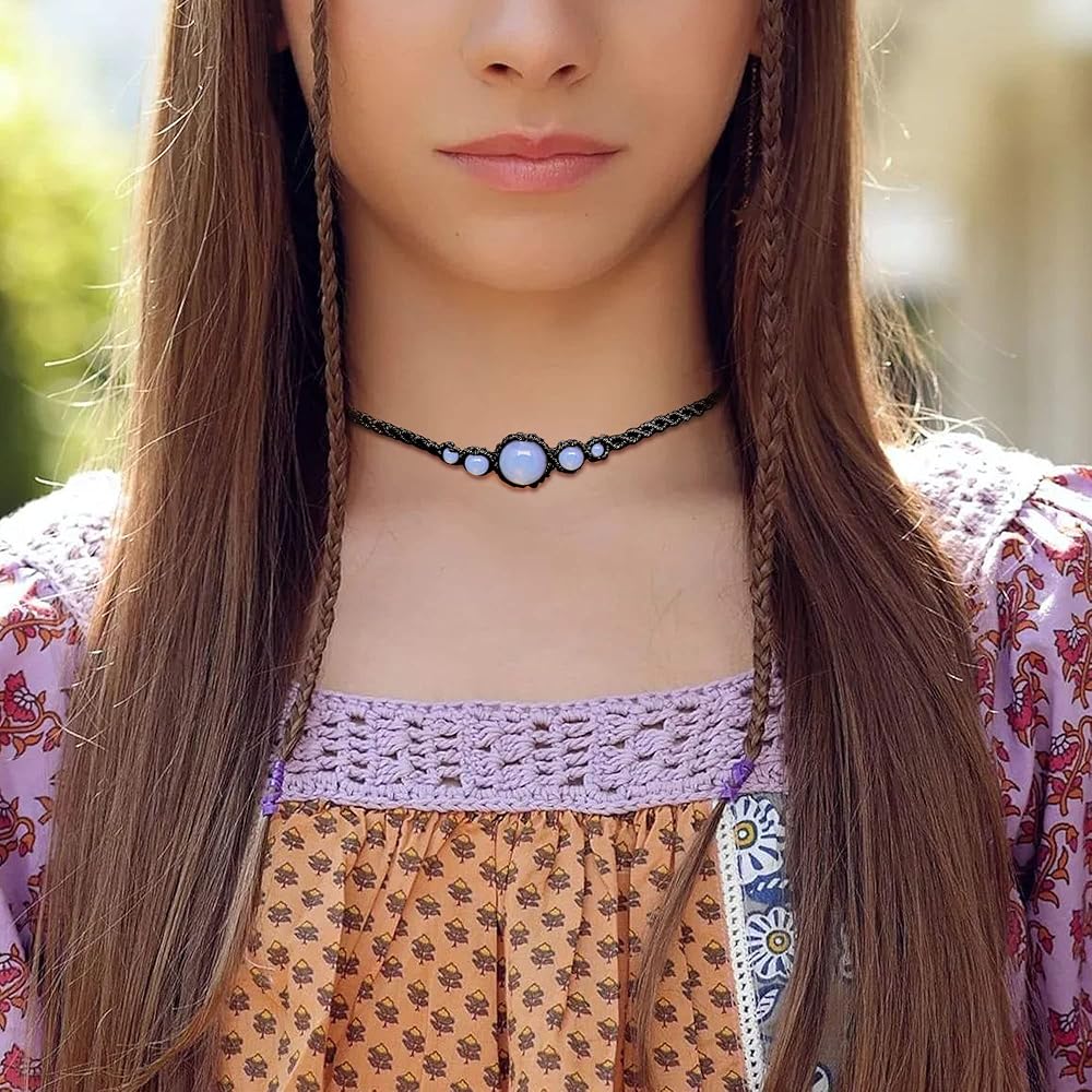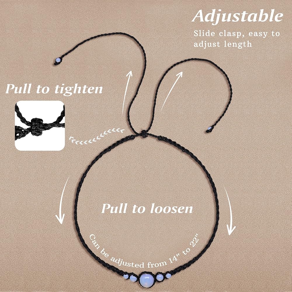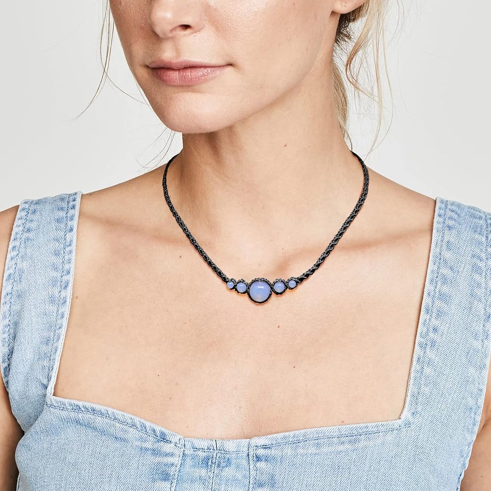 Nymerianoble Moonstone القلائد للنساء اليدوية قلادة سوداء للنساء Moonstone قلادة Macrame المختنقون للنساء حجر القمر الطبيعي مجوهرات الأحجار الكريمة هدايا عيد الميلاد