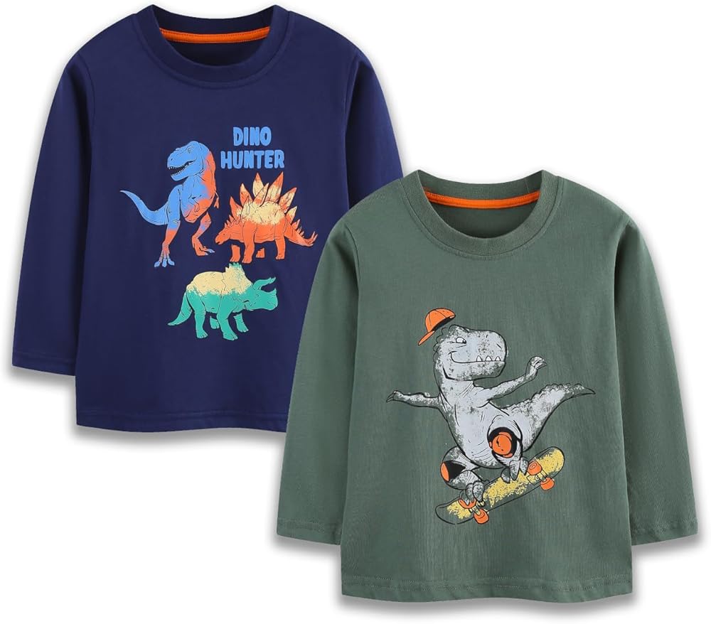Toddler Boys Cartoon Tshirts Long Sleeve Fall Winter Cotton Tees Shirts for Kids Casual Tops