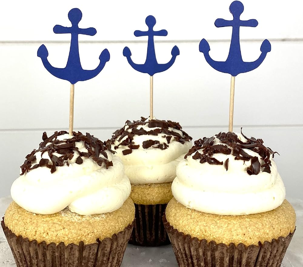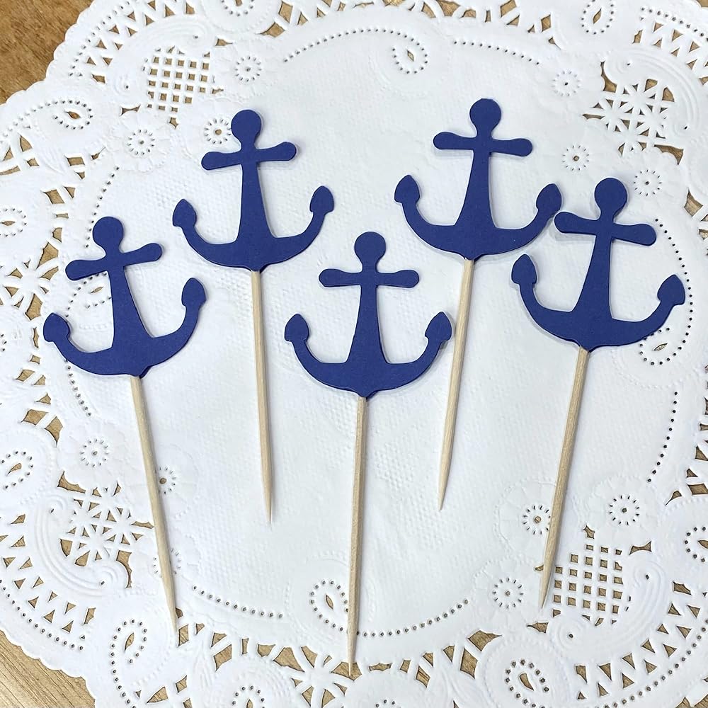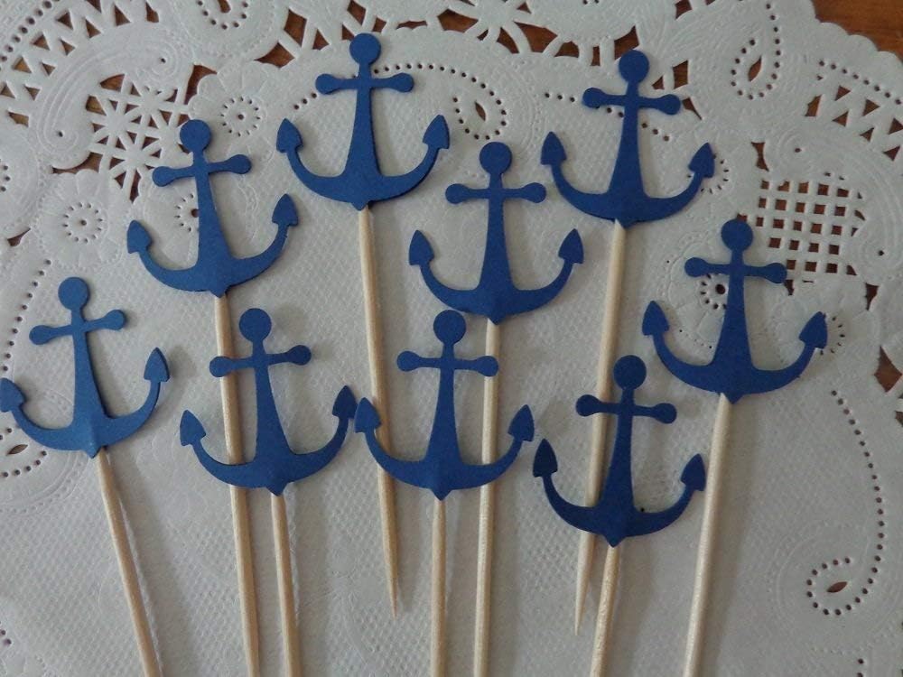 These navy blue anchor cupcake toppers are handcrafted here at Honeybear Party Boutique, in New Hampshire, USA. They are double sided for maximum cuteness. The key to a great party is in the details! These cute cupcake toppers / food picks are the perfect addition to your food display. They can be used in a variety of desserts. They work well with many different foods too, sandwiches, deviled eggs, cheeses and more! Simply insert them into foods and add that special something to your special event! Want to see more variety? Check out Honeybear Party Boutique for hundreds of choices!
