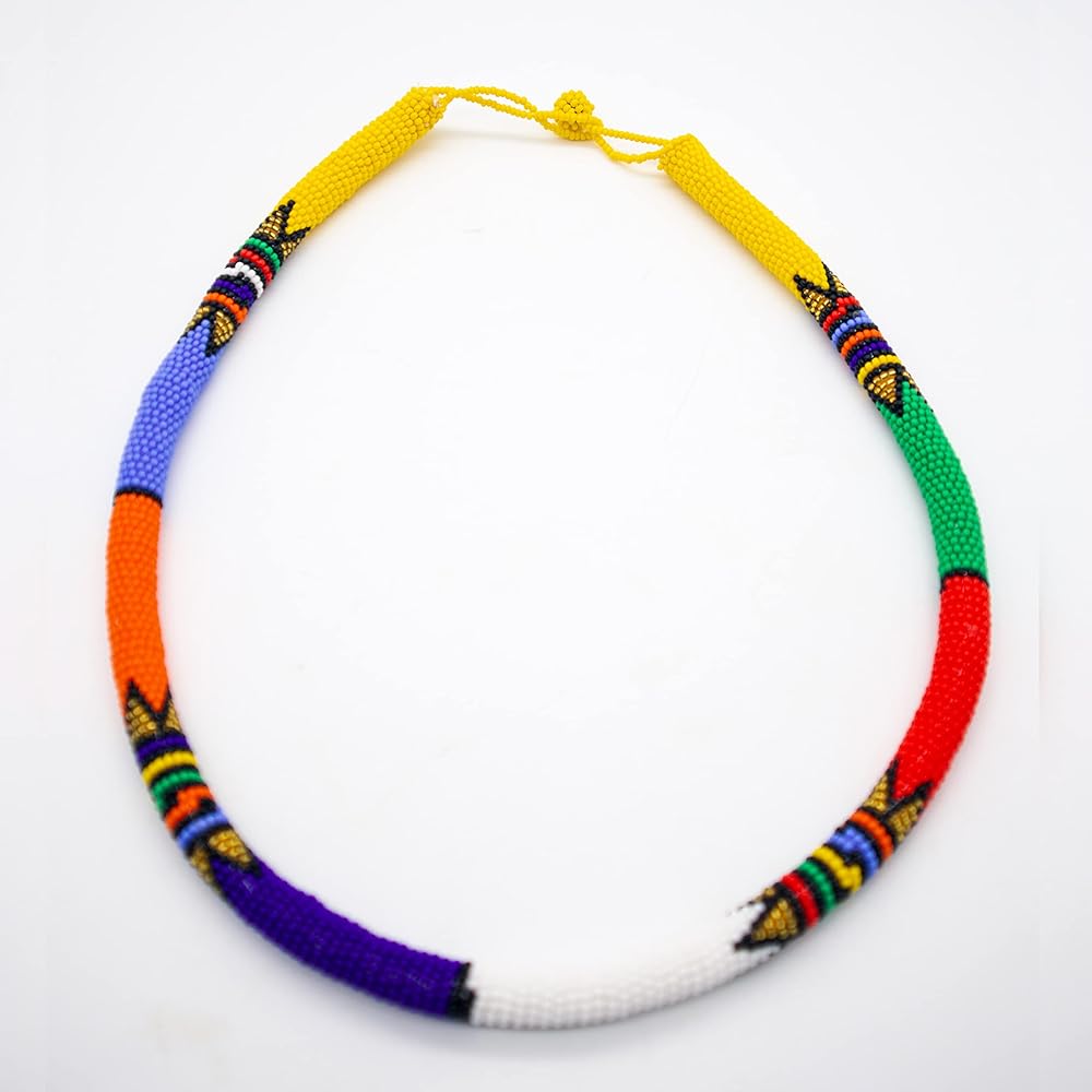 • القماش: مصنوع بالطريقة الأفريقية التقليدية من الخرز الزجاجي عالي الجودة وأقل مرونة من القلائد العادية