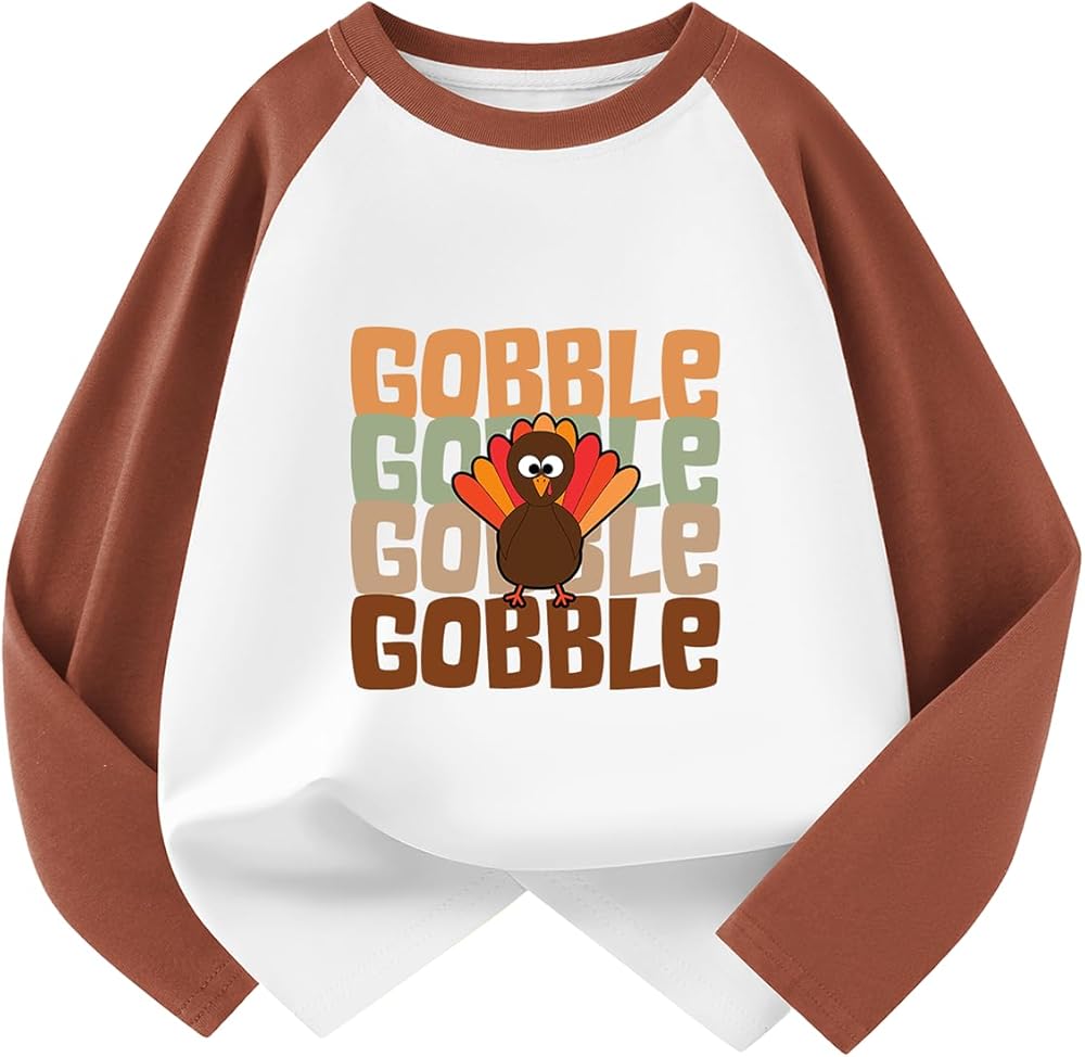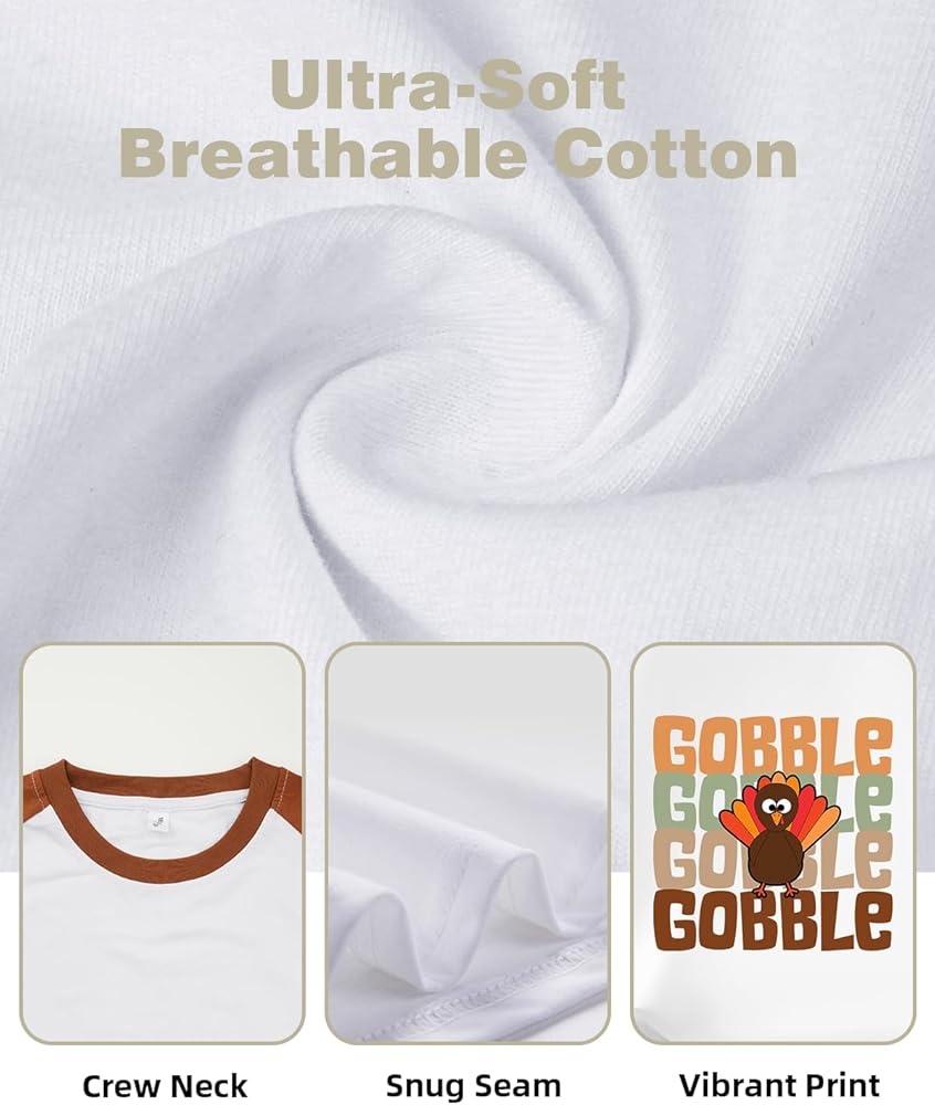 راحة قطنية فاخرة: مصنوع من قطن ناعم مسامي، هذا القميص المريح لعيد الشكر للأولاد والبنات يشعر بأنه لطيف على البشرة أثناء ارتداء العطلات الطويلة.