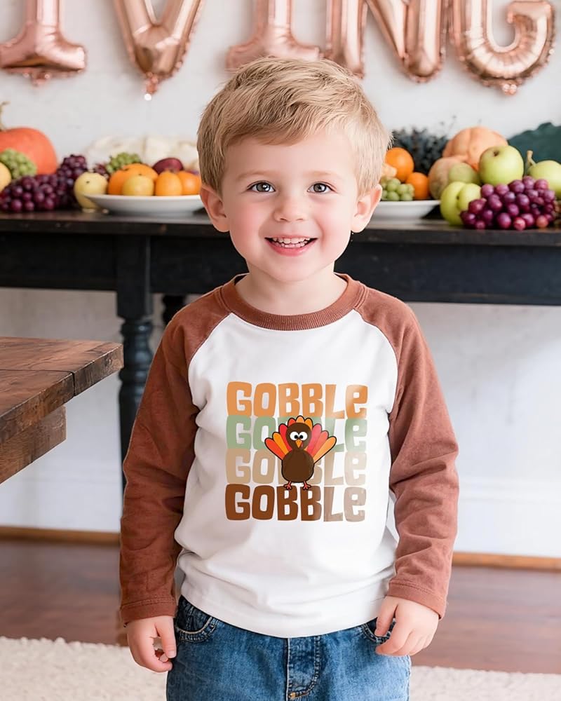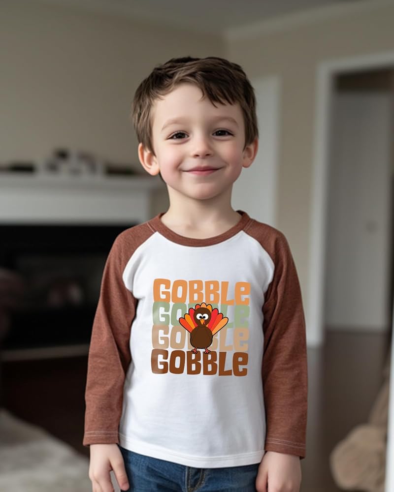 خيارات الأكمام الموسمية: متوفر في كلا الإصدارين بأكمام قصيرة وأكمام طويلة دافئة، مثالي لجميع ظروف الطقس الخريفية كقميص مريح لعيد الشكر للأطفال الصغار.