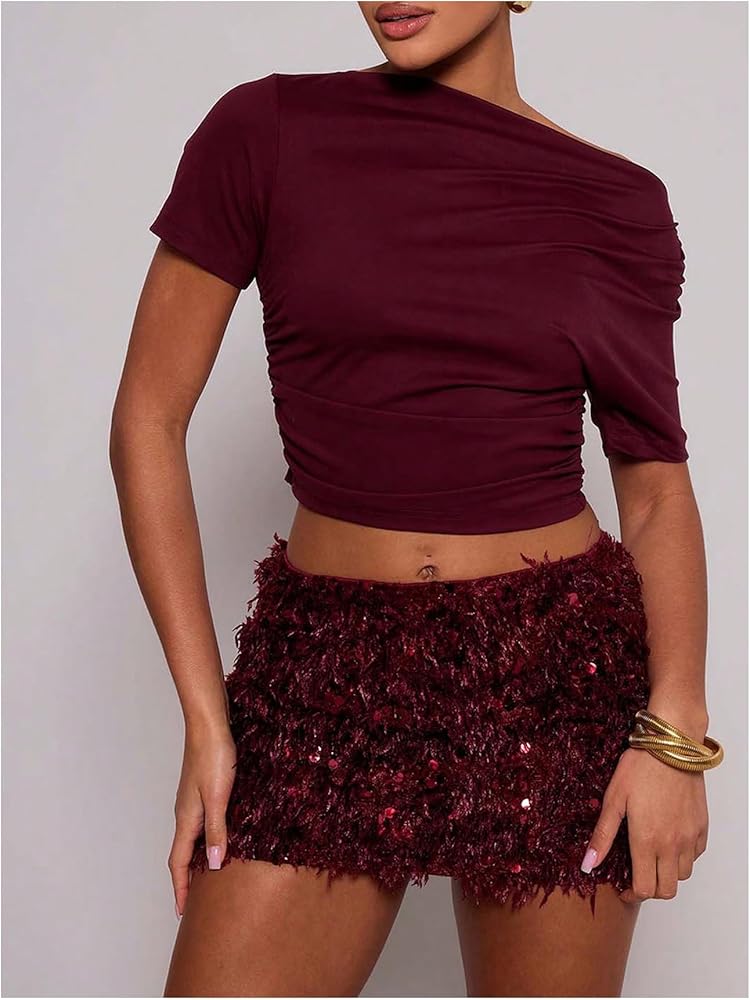 • المزايا: ترتر، غامض، خصر منخفض، تنورة قصيرة للنساء