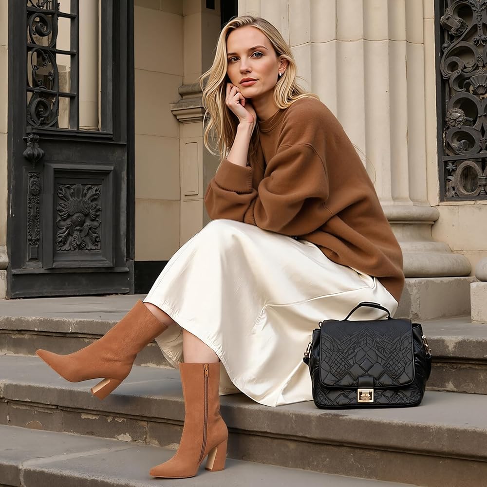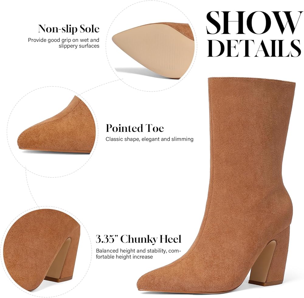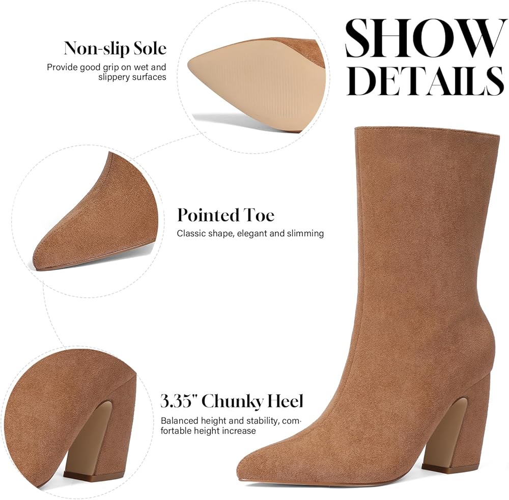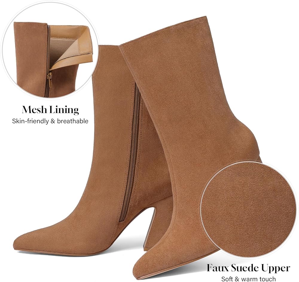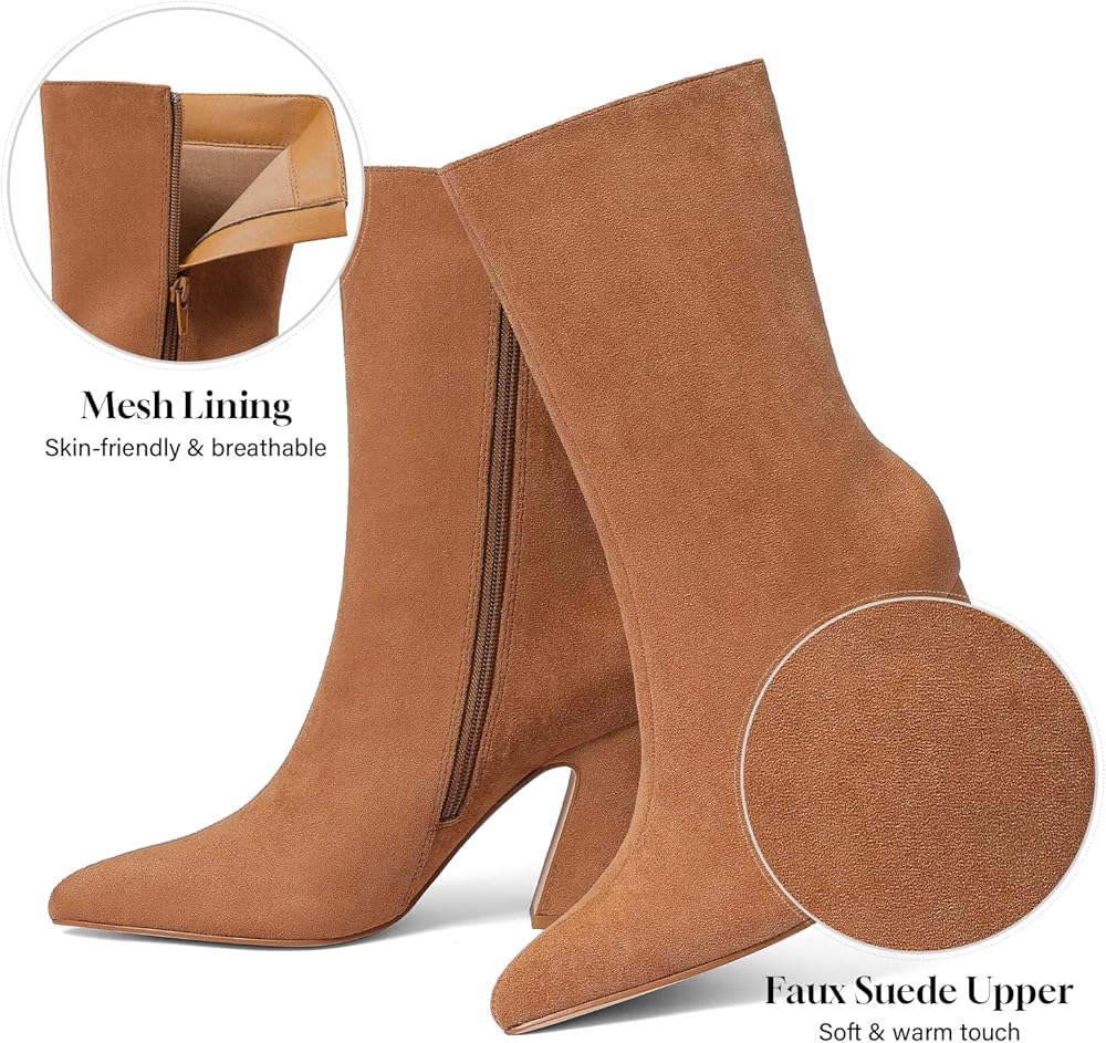 [أحذية نسائية من جلد الغزال]: هذه الأحذية متوسطة الساق مصنوعة من جلد سويدي صناعي ناعم لملمس رقيق وصديق للبشرة. البطانة الشبكية المسامية تناسب ساقيك بشكل دافئ، حتى بعد ساعات طويلة من الارتداء دون كشط أو عرق!