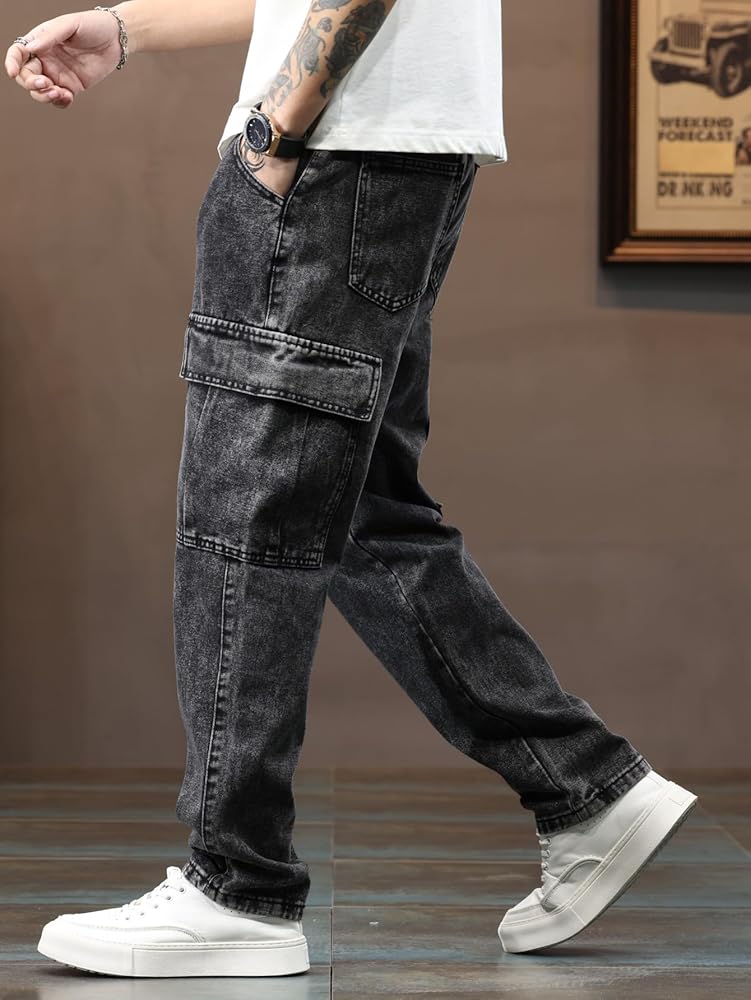 Step into streetwear authenticity with DFGIGT's Men's Tapped Wide-Leg Jeans. Crafted from rigid non-stretch cotton, these loose-fit cargo jeans feature reinforced taped seams for durability. Designed for the urban explorer, the multi-pocket layout offers practical storage while making a statement. Embrace hip-hop culture with every step – layer with oversized hoodies and fresh kicks for an iconic look that commands attention.
