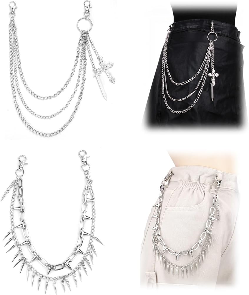 Elevate your streetwear game with this complete punk chain duo.Designed for men who embrace alternative fashion, this set combines functional wallet security with bold decorative elements to transform any outfit.