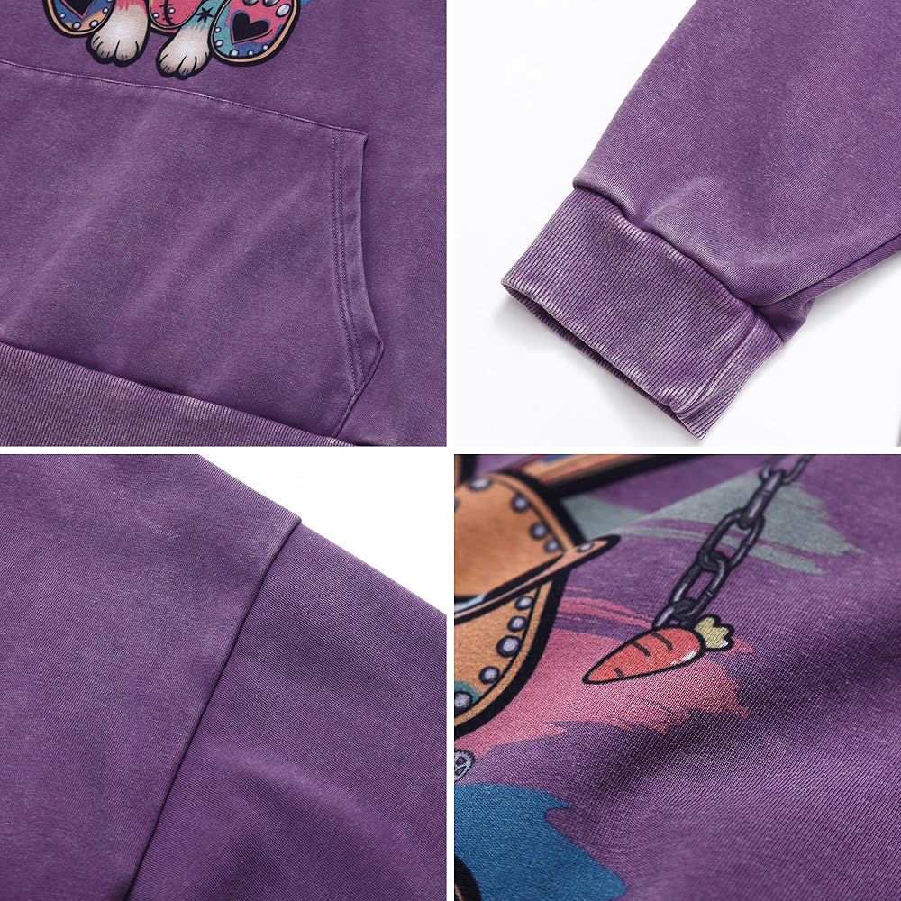 بلوفر جمالي كبير الحجم متعدد الاستخدامات: غسيل يدوي، غسيل في الغسالة، يوصى به مع كيس غسيل، لا يمكن تبييضه، أو تعليقه أو تجفيفه بالتعليق. سترة بغطاء رأس برسومات لن تنكمش أو تتلاشى بعد الغسيل.